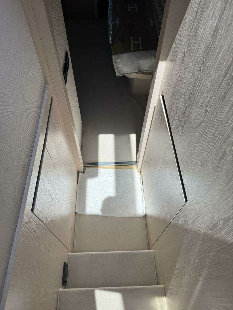 Step aboard and you’ll immediately notice the massive flybridge—one of the largest in its class—offering plenty of space to enjoy the sun, dine with friends, or simply take in the view. Inside, the salon is bright and airy, with oversized windows and elegant finishes that make it feel like a floating luxury apartment. The open-plan layout flows effortlessly from the galley to the lounge and dining areas.