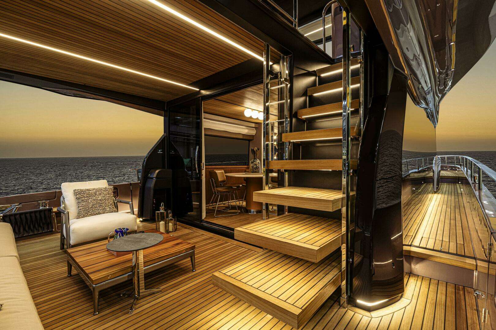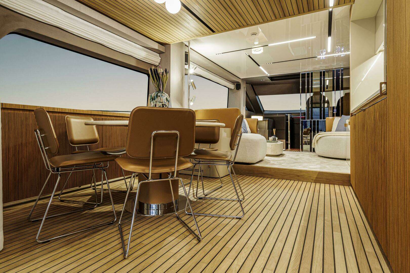 - Solid Teak Coverings on Flybridge Floor