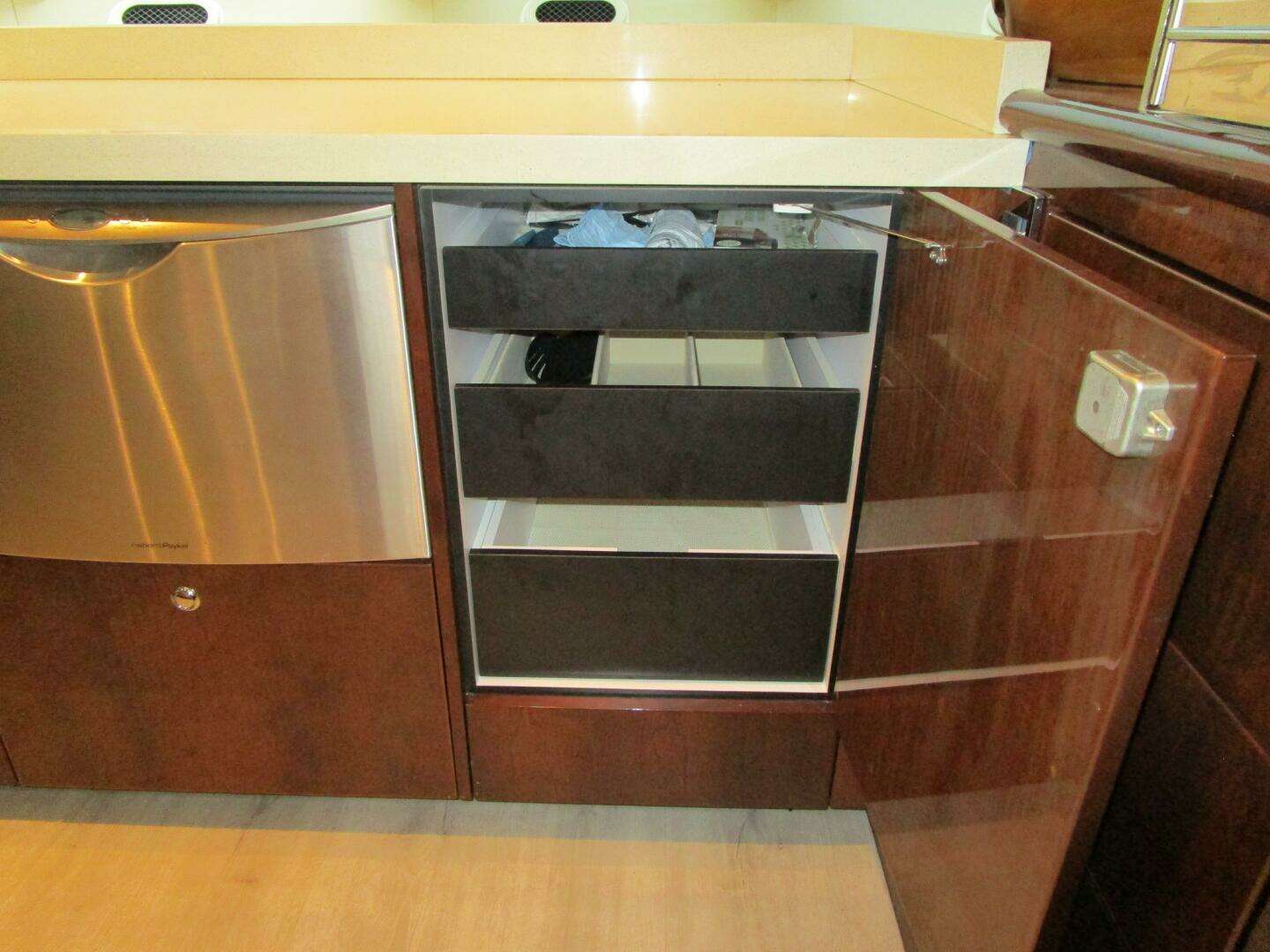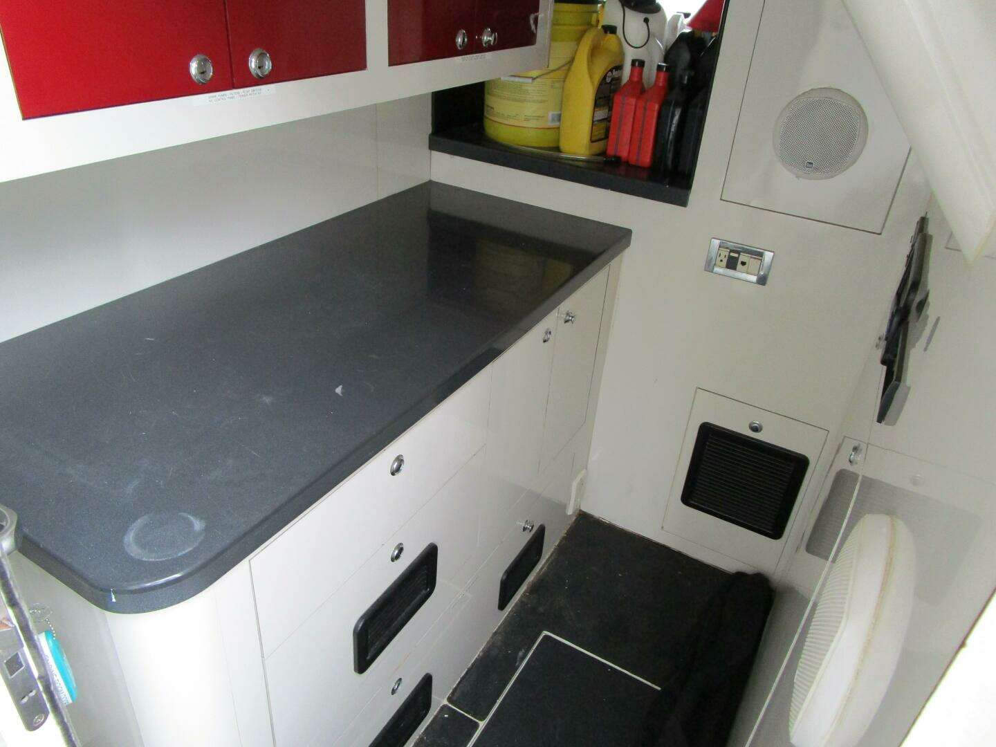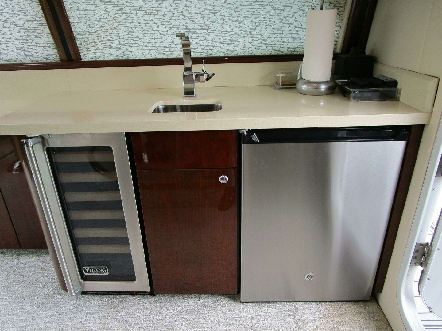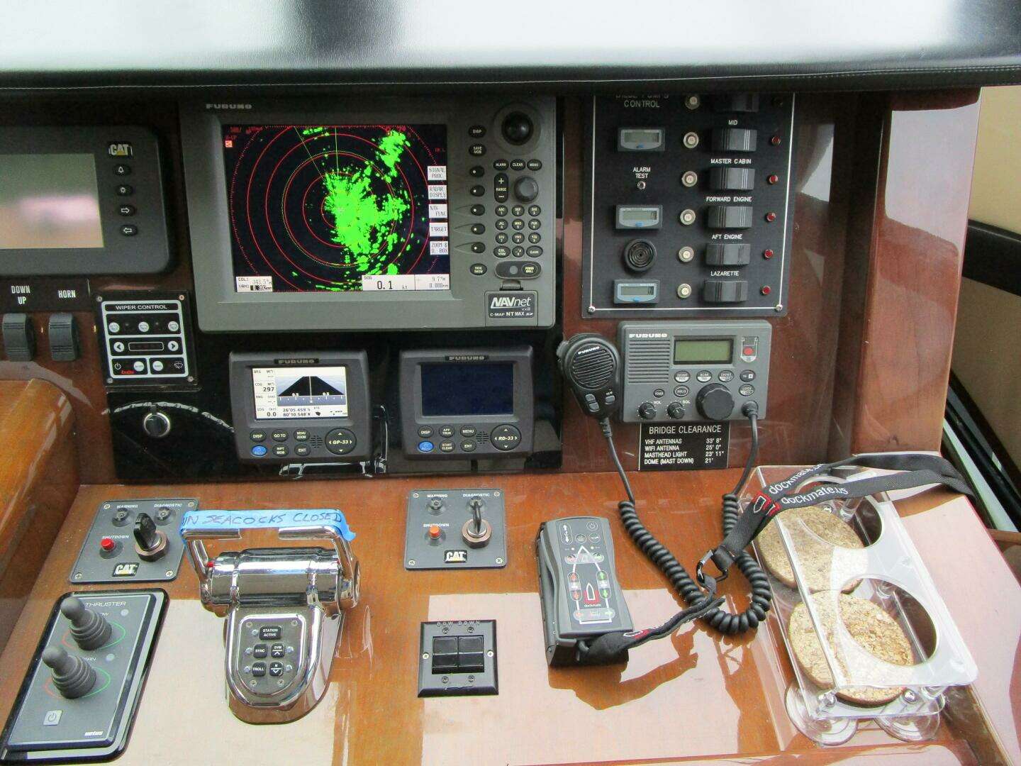 - 12V battery with 5-amp charge dedicated for flybridge electronics at main deck area forward of galley