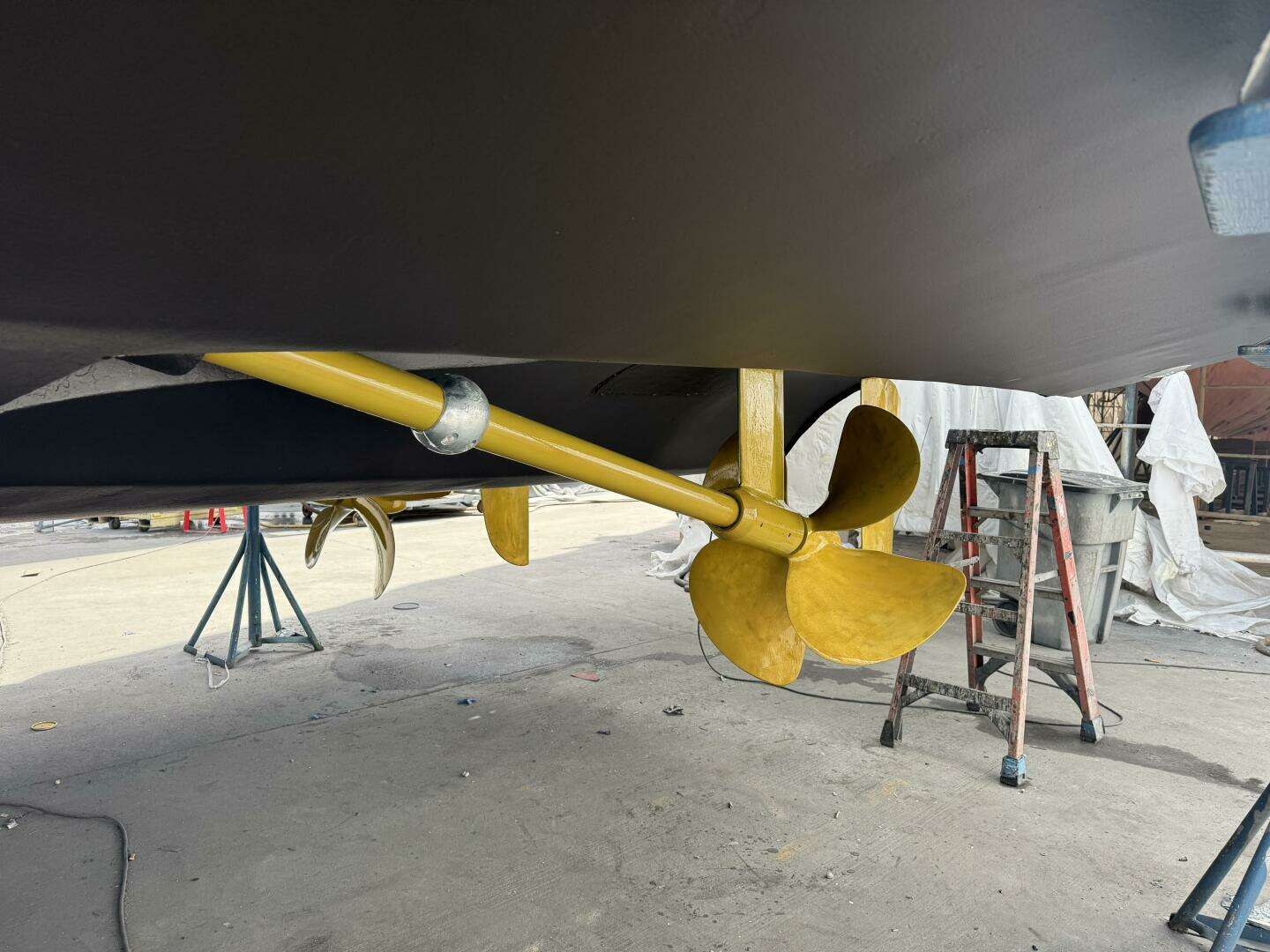 Hauled in Ft. Lauderdale January 2026. The bottom received a heavy sanding, (2) coats of primer and (2) coats of ablative bottom paint. Running gear was coated with Propspeed, zincs are new.