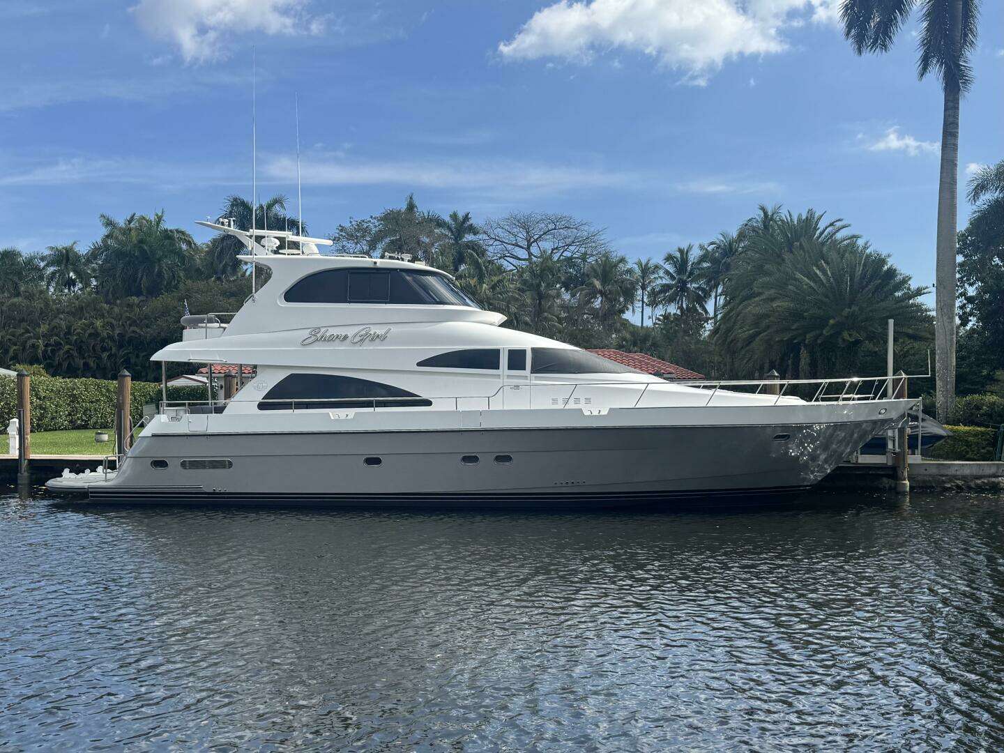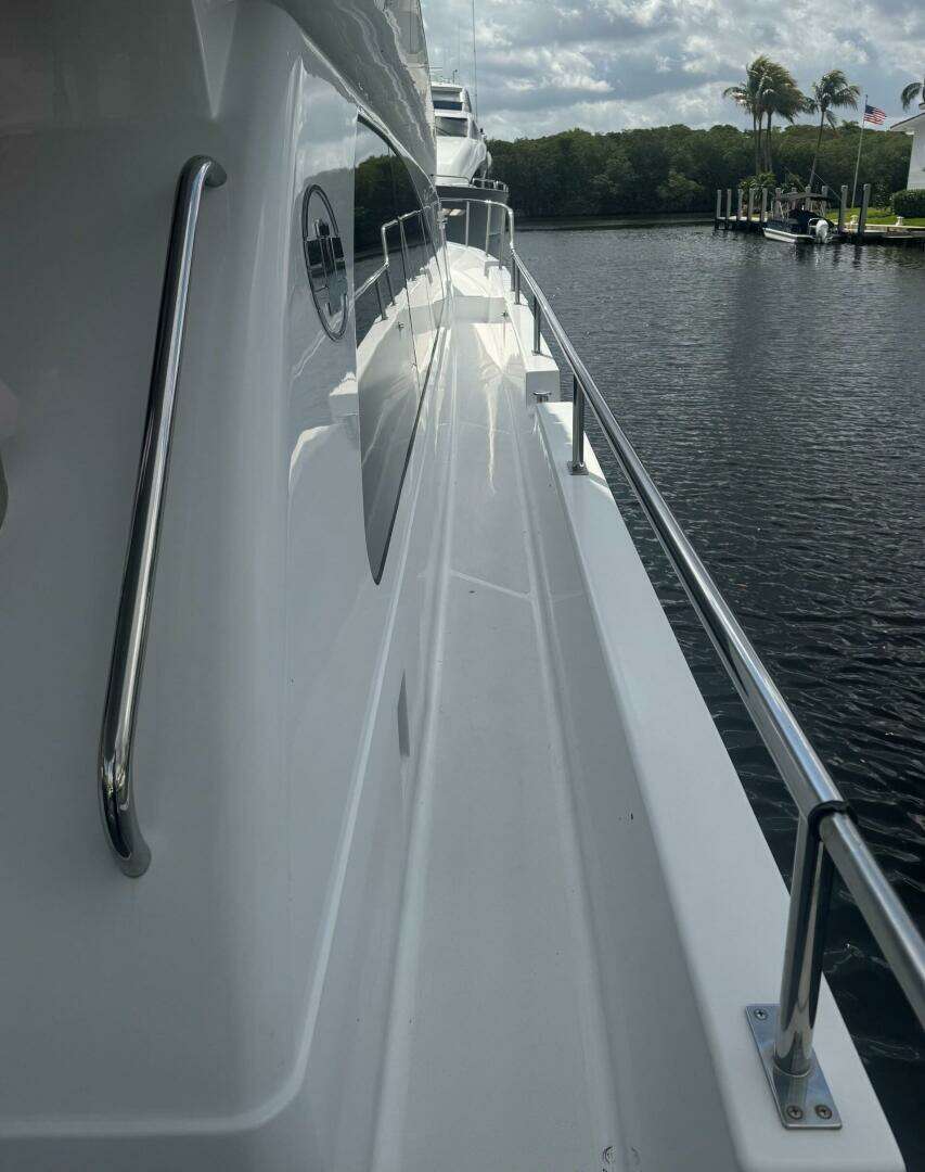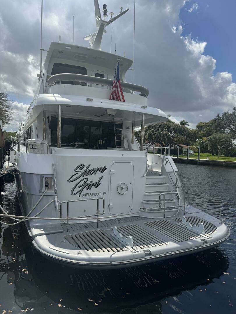 “SHORE GIRL” may be entered from either the swim platform on a floating dock or any of four boarding gates on her main deck via the wide walk-around side decks.