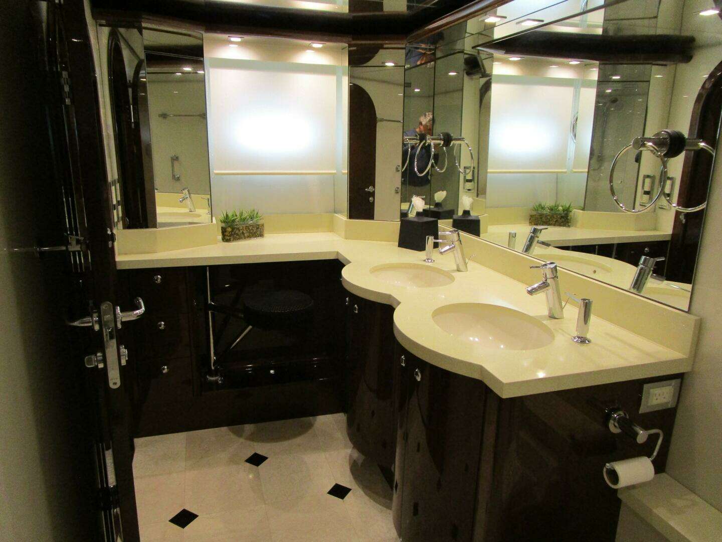 The lazarette with a head is entered via the swim platform door. This area is just aft of the engine room.