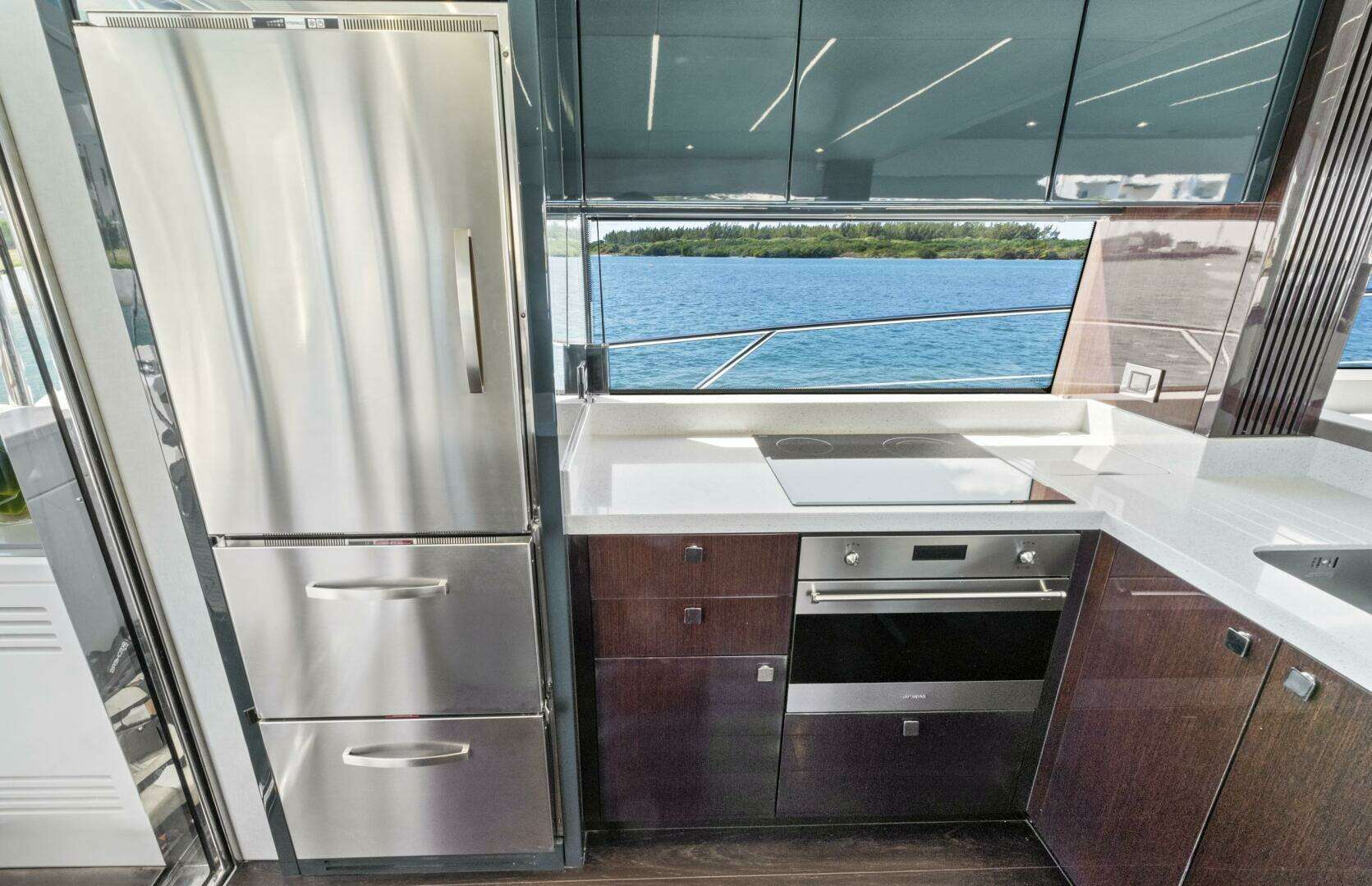 - Aft Galley layout with doors opening to aft deck and bar