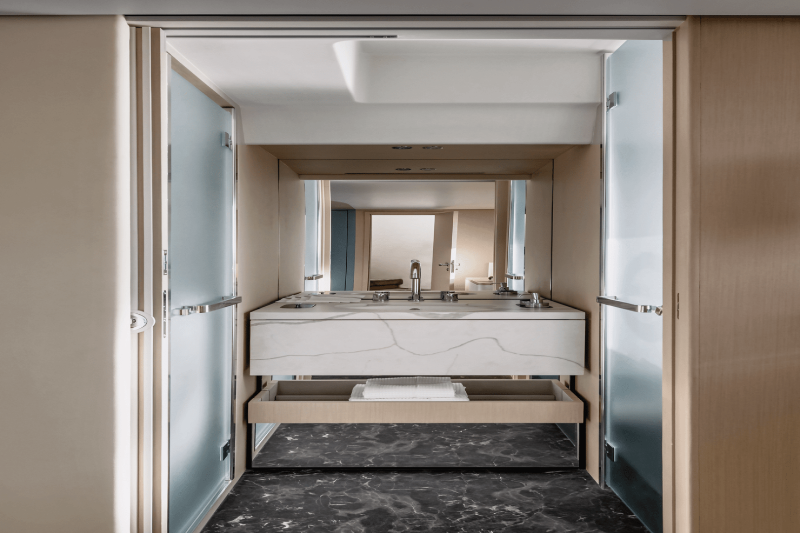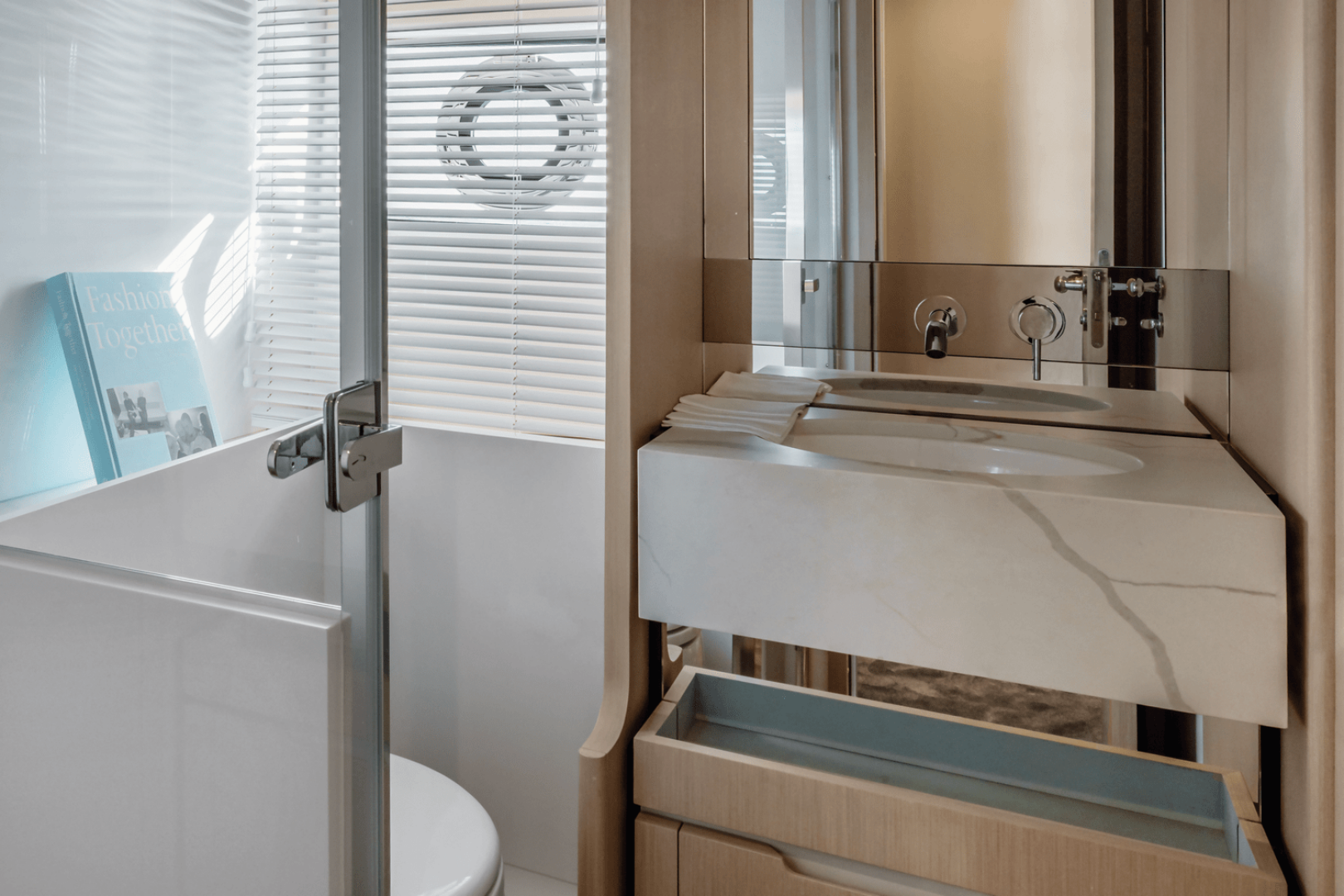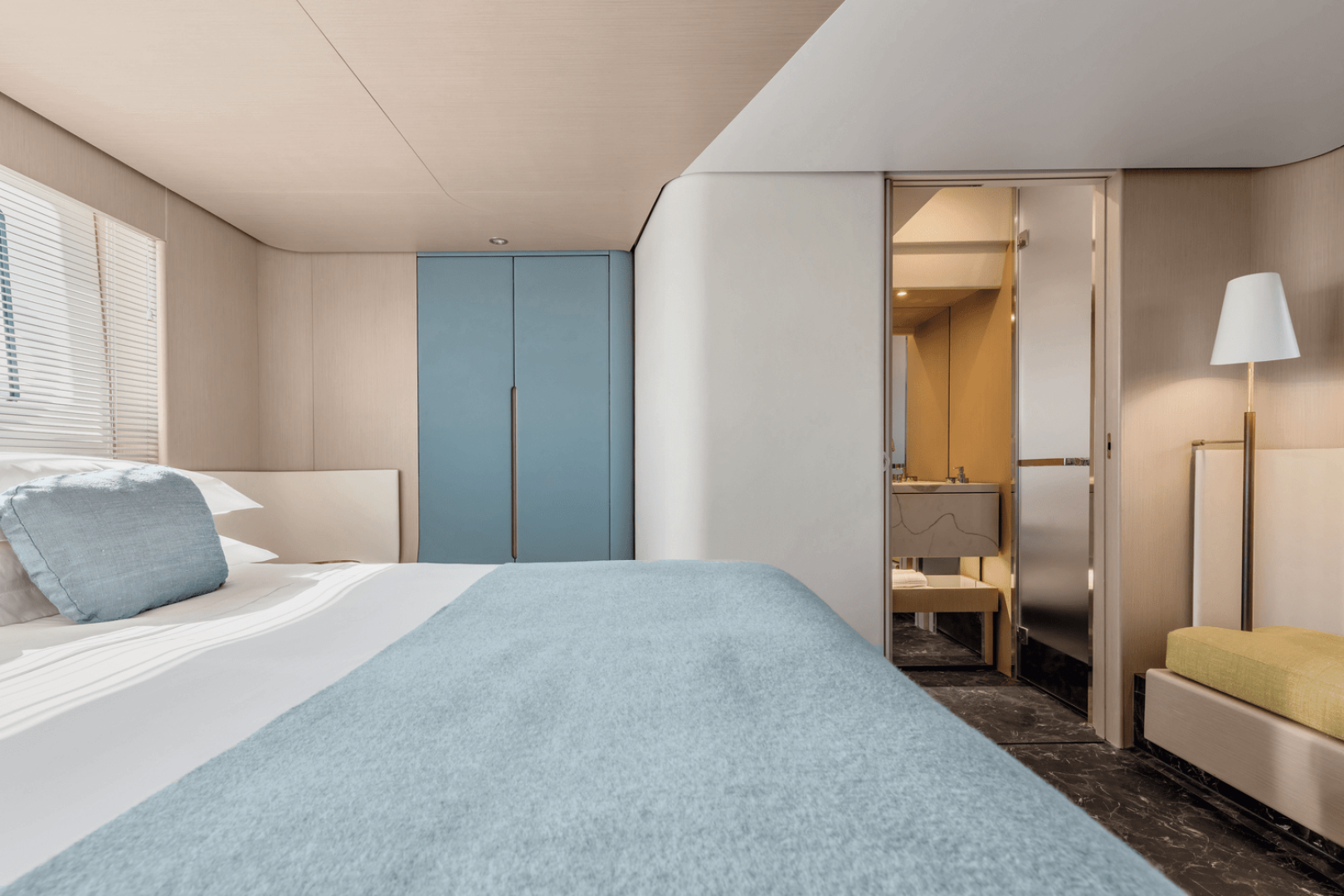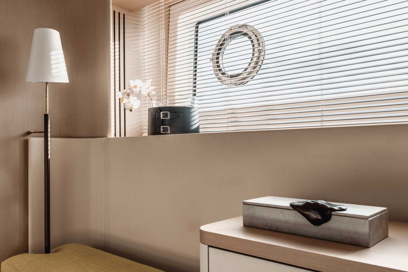 With a choice of three main deck layouts and a multi-functional zone, the new Azimut 68 is the epitome of a true “world yacht”. The starting point for its design was a comprehensive analysis of all the various ways owners and guests pass their time on board, taking into account variations in lifestyle habits and preferences across different markets. The result is yet more freedom, but this time, the freedom of boat owners to choose the layout that best reflects their idea of how to make the most of their onboard experiences. An elegant living area is located in the entrance area of the main deck, with the galley tucked away behind an innovative combination of ribbed wood and plexiglass. This solution, called Lanterna, closes the galley off to create privacy, but enables the light to flow through the entire space for a luminous, spacious environment. For owners who are seeking a more convivial layout, this option, also situated in the bow, is the ideal solution. The galley is in a discreet location, but opens directly into the dining area, which can also be converted to a second lounge zone. This layout is slightly more informal, with the galley located in the stern and the dining room situated immediately as you enter from the cockpit, for a relaxed indoor-outdoor flow, while the living room is moved towards the bow.