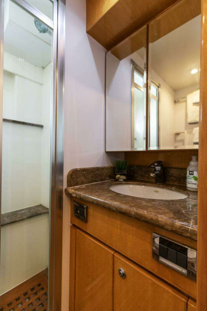This family friendly yacht was built to accommodate 4-6 overnight guests. The main staterooms are comprised of an exceptionally large master suite and a VIP stateroom with a queen berth. (Please note that the guest accommodations can be easily converted into a 3-stateroom layout; please call for details.) There are 3 heads below deck. A third stateroom is located aft, and features twin beds and a private head that is suitable for either two crewmembers or additional guests. Every creature comfort was considered on this remarkable boat.
