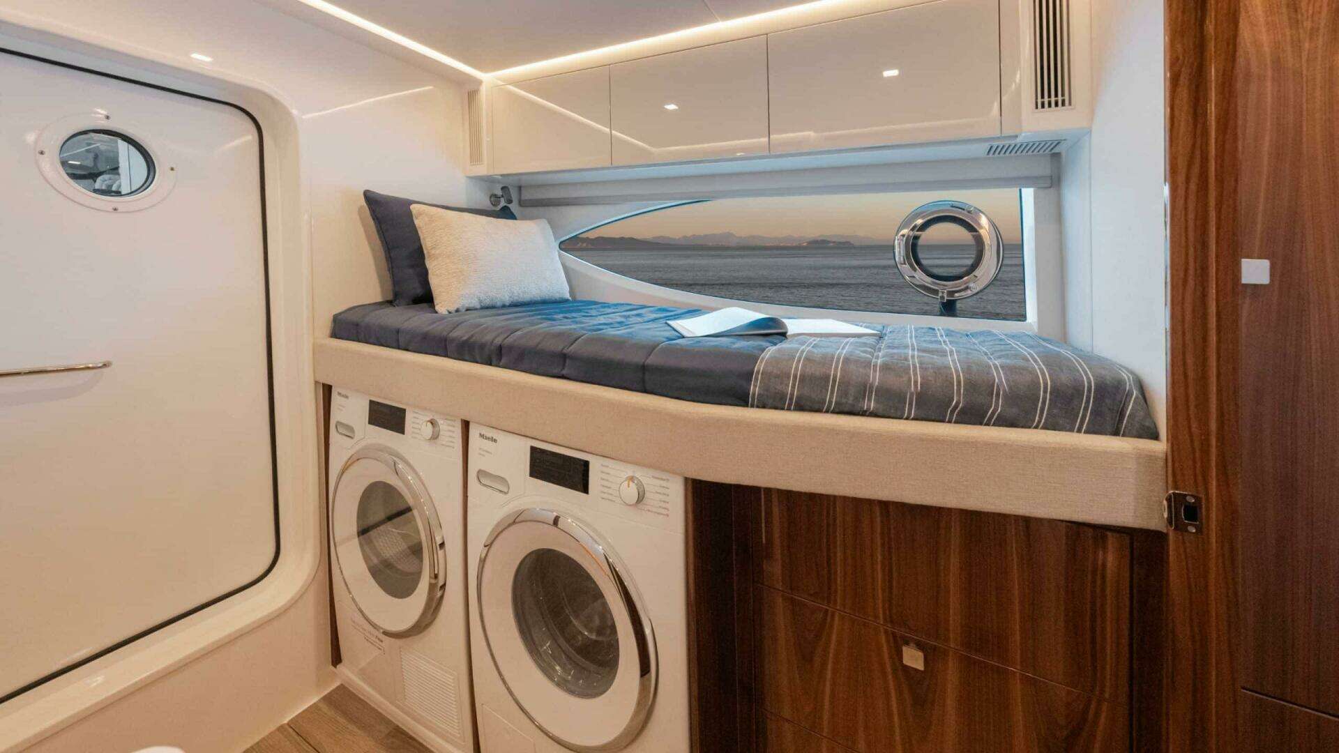 Perfect for a long-range adventure or a weekend away; with a choice of 3 or 4 staterooms and three bathrooms, a crew cabin or utility laundry, a full-height walk-through engine room and an impressive tender garage devoted to water sports.