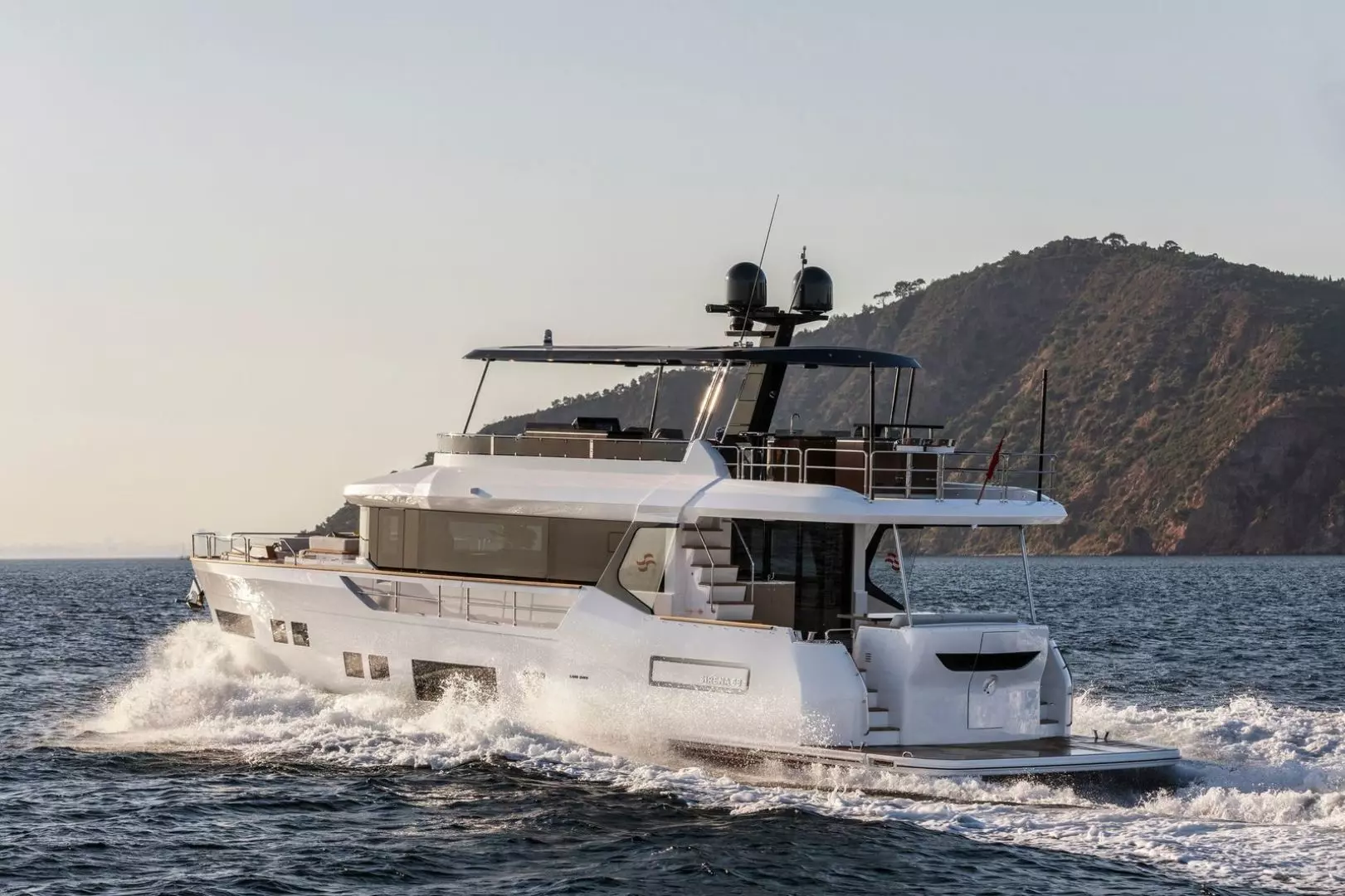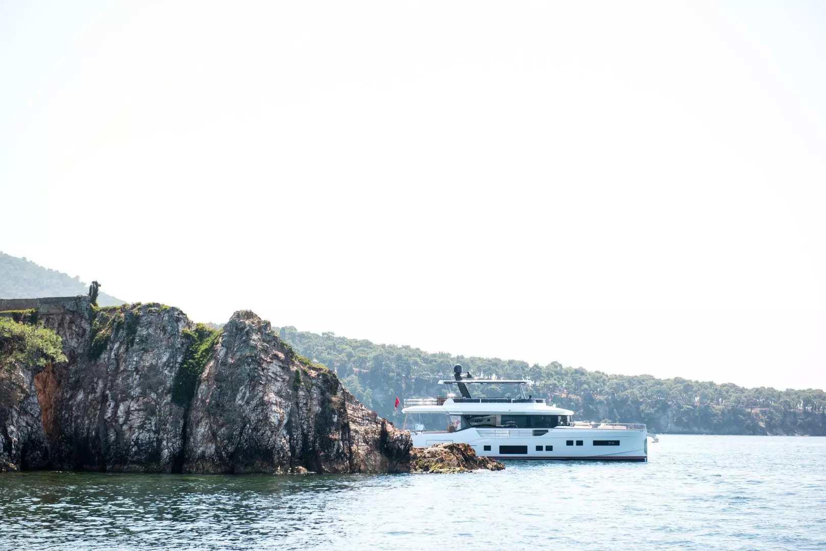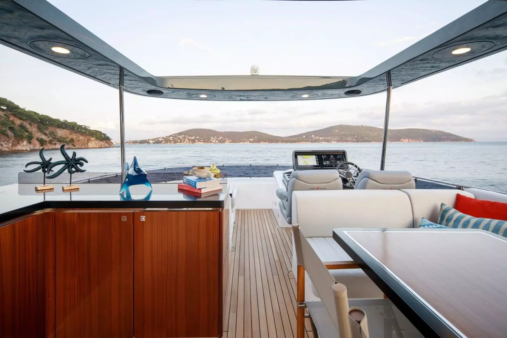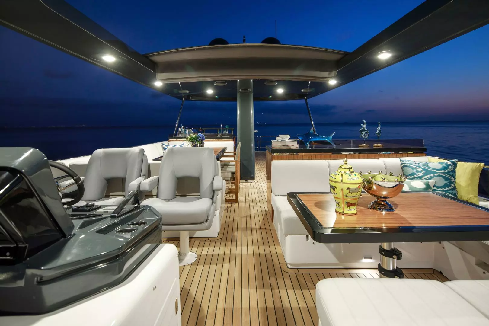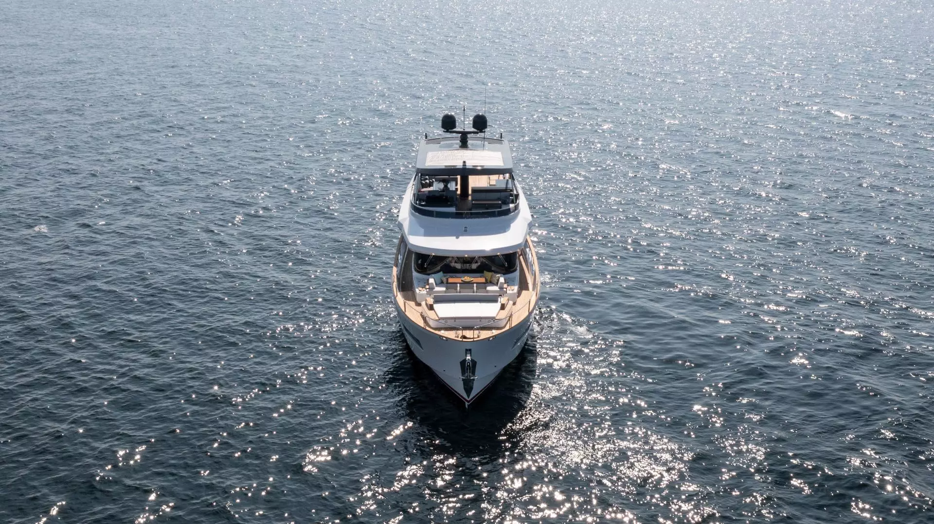 The shape of the hull also creates interior volume that changes the onboard experience for the owners and their guests. Anyone who sets foot on this yacht will find space to allow gatherings of large groups together, as on the flying bridge, the aft deck area, or the saloon, or even the foredeck, where the light and shadow, breezes and views combine to elevate the experience offer a real change of perspective.