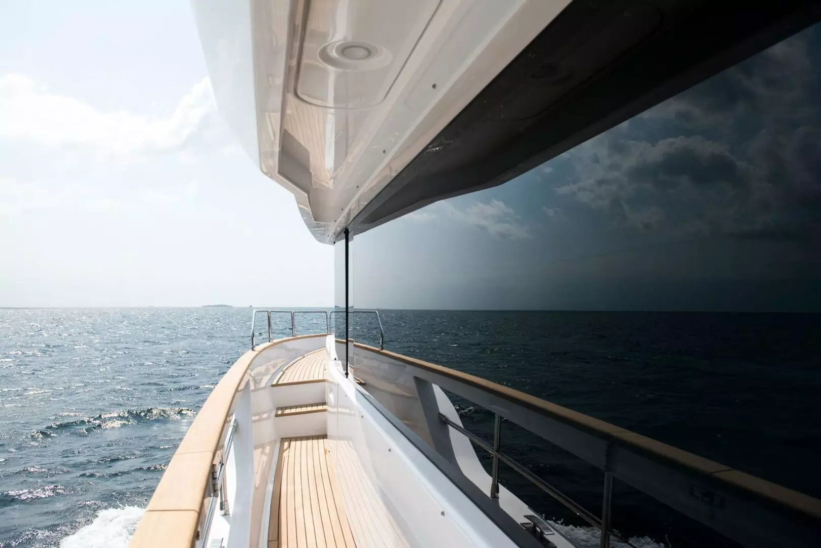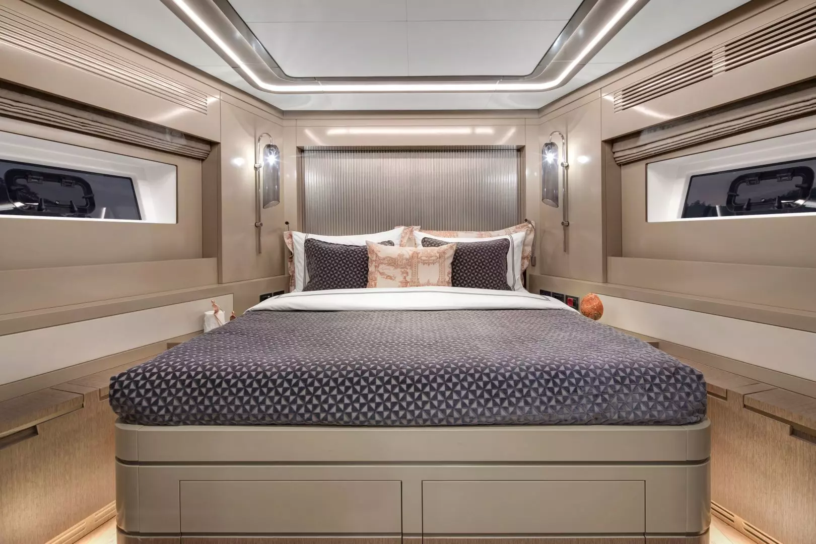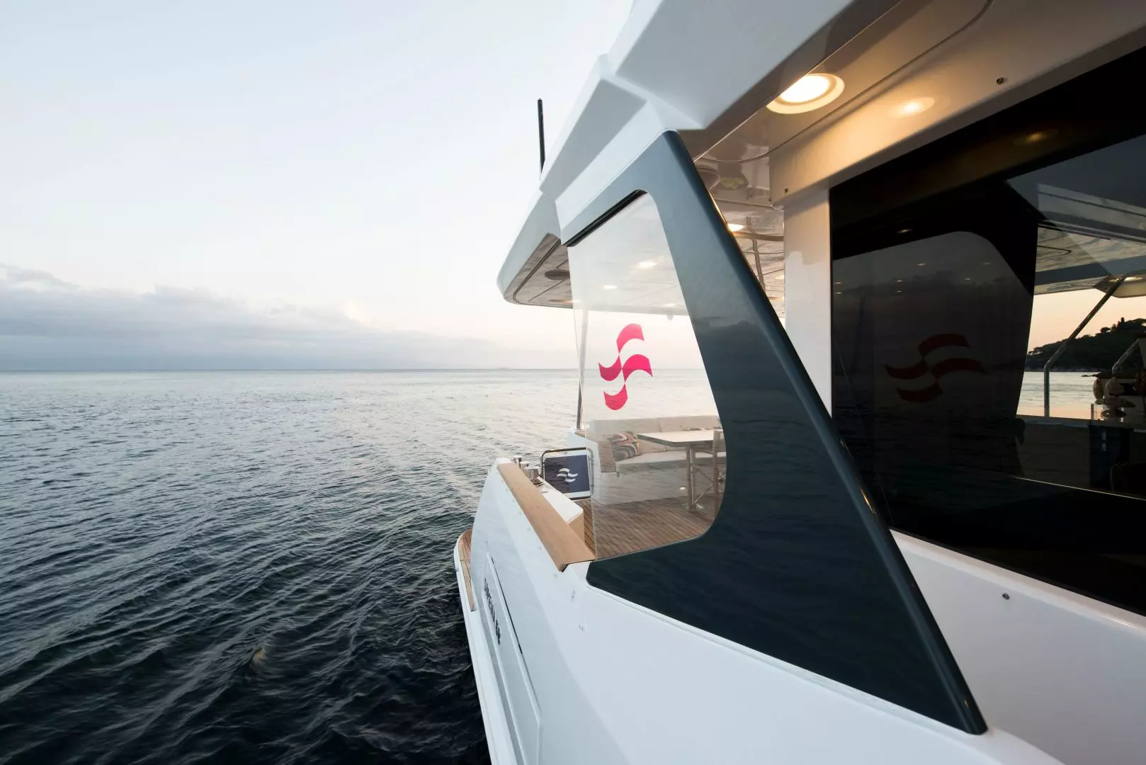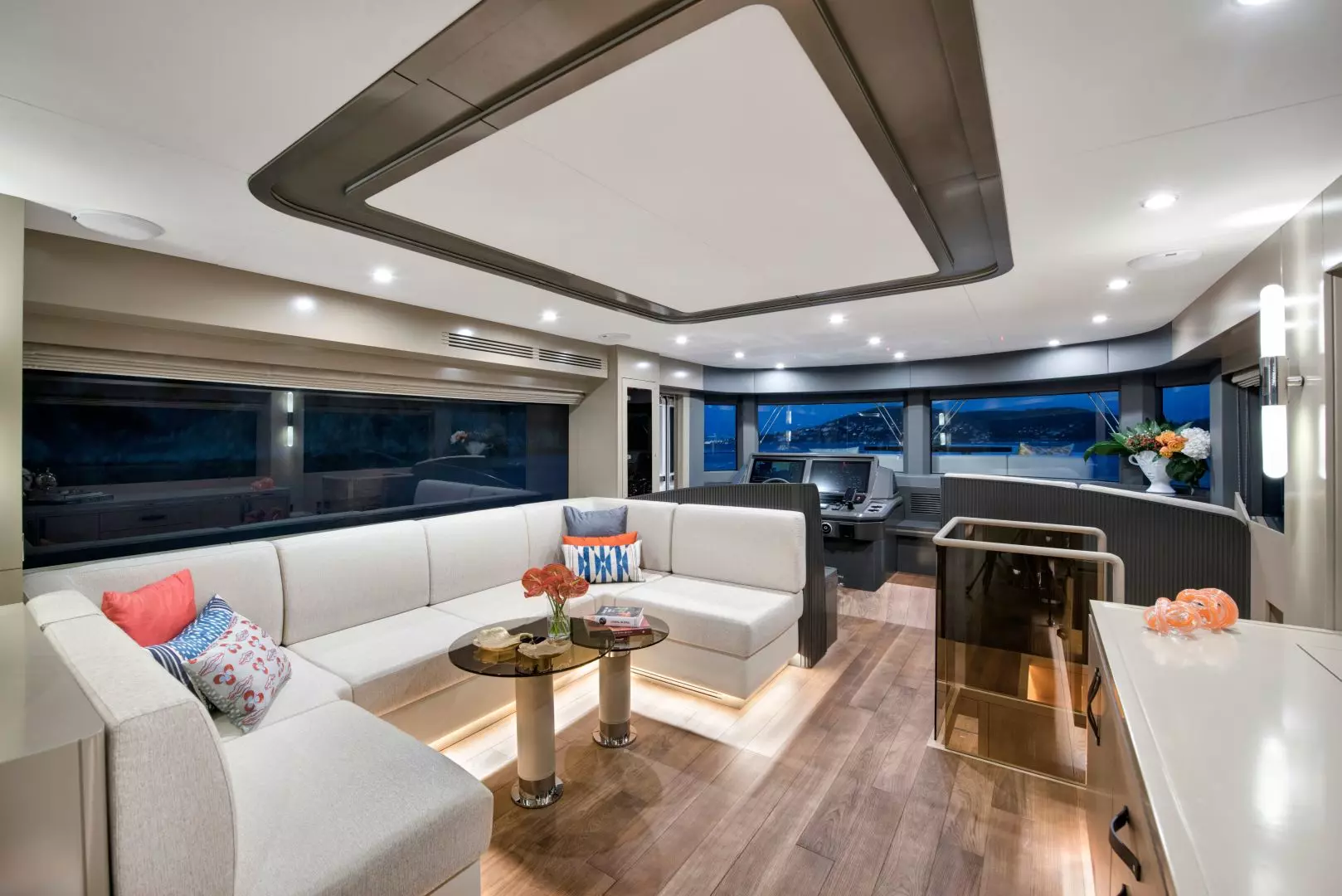 The shape of the hull also creates interior volume that changes the onboard experience for the owners and their guests. Anyone who sets foot on this yacht will find space to allow gatherings of large groups together, as on the flying bridge, the aft deck area, or the saloon, or even the foredeck, where the light and shadow, breezes and views combine to elevate the experience offer a real change of perspective.