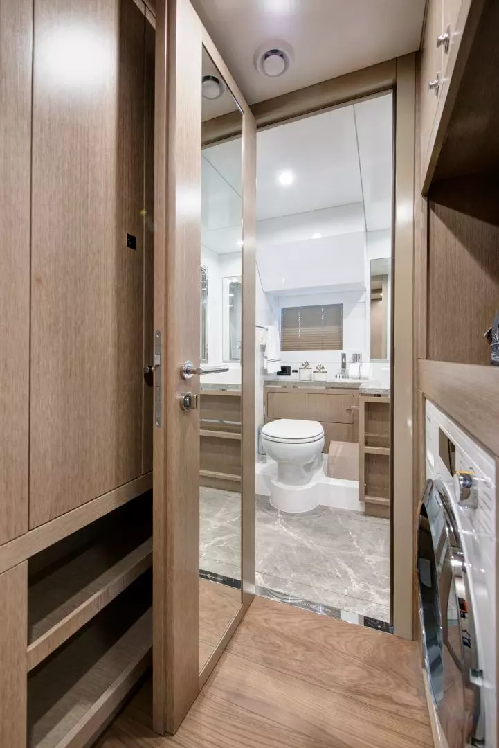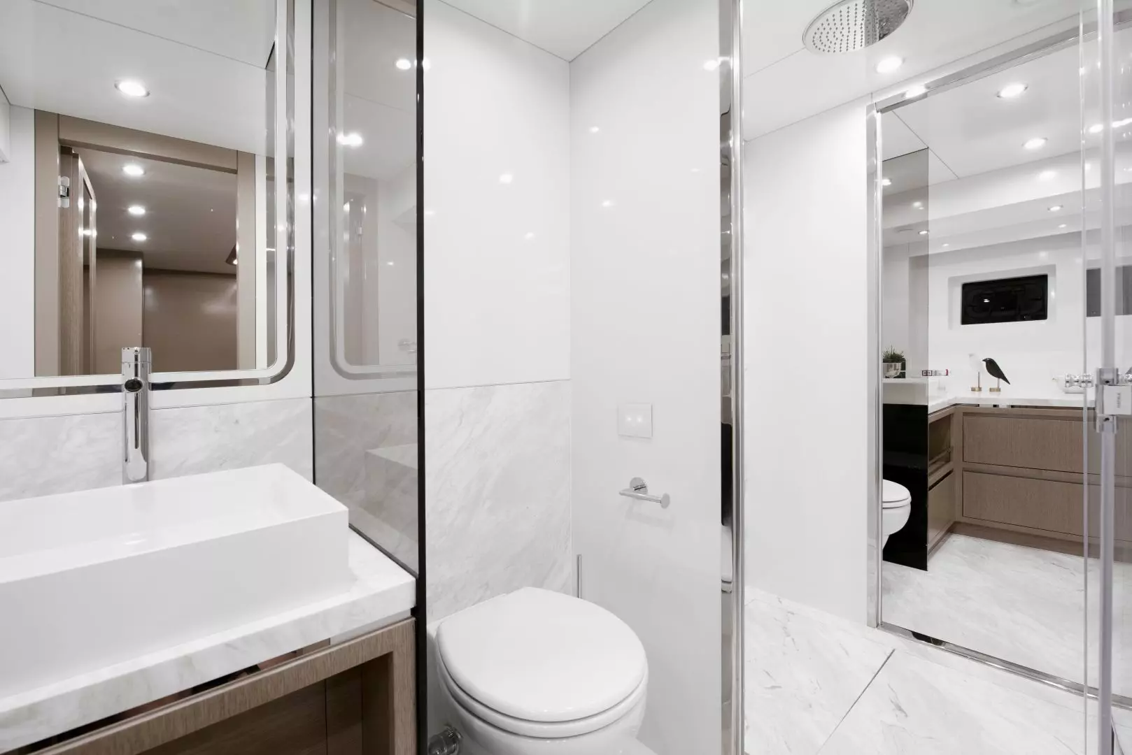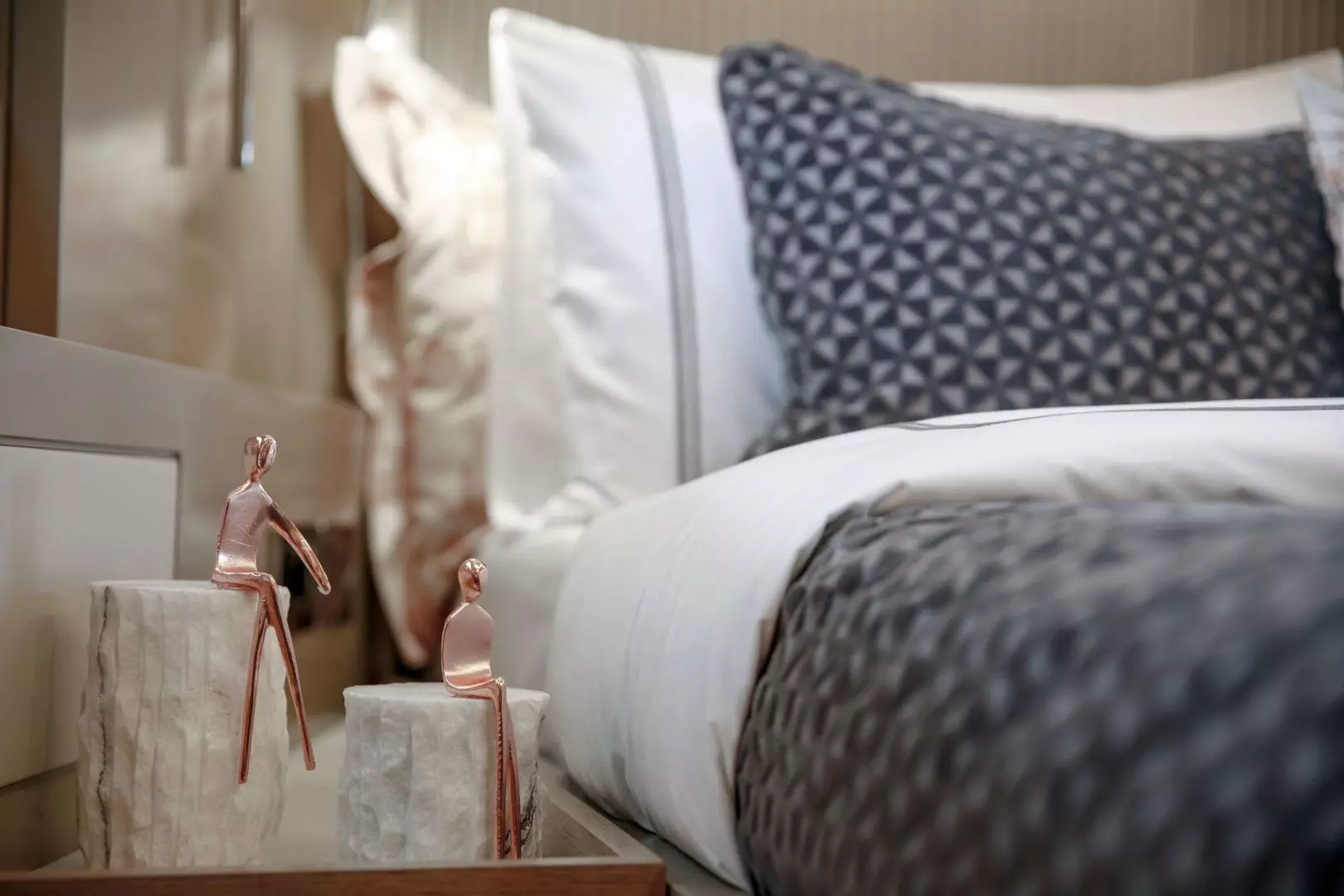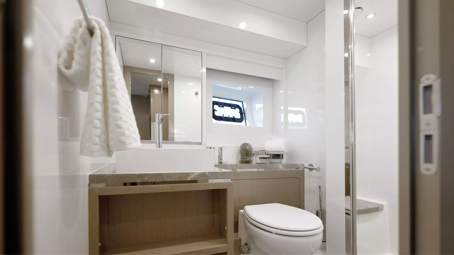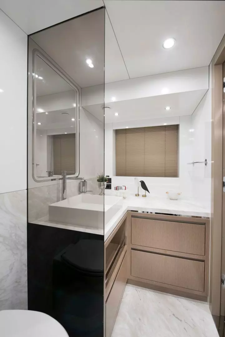 The shape of the hull also creates interior volume that changes the onboard experience for the owners and their guests. Anyone who sets foot on this yacht will find space to allow gatherings of large groups together, as on the flying bridge, the aft deck area, or the saloon, or even the foredeck, where the light and shadow, breezes and views combine to elevate the experience offer a real change of perspective.