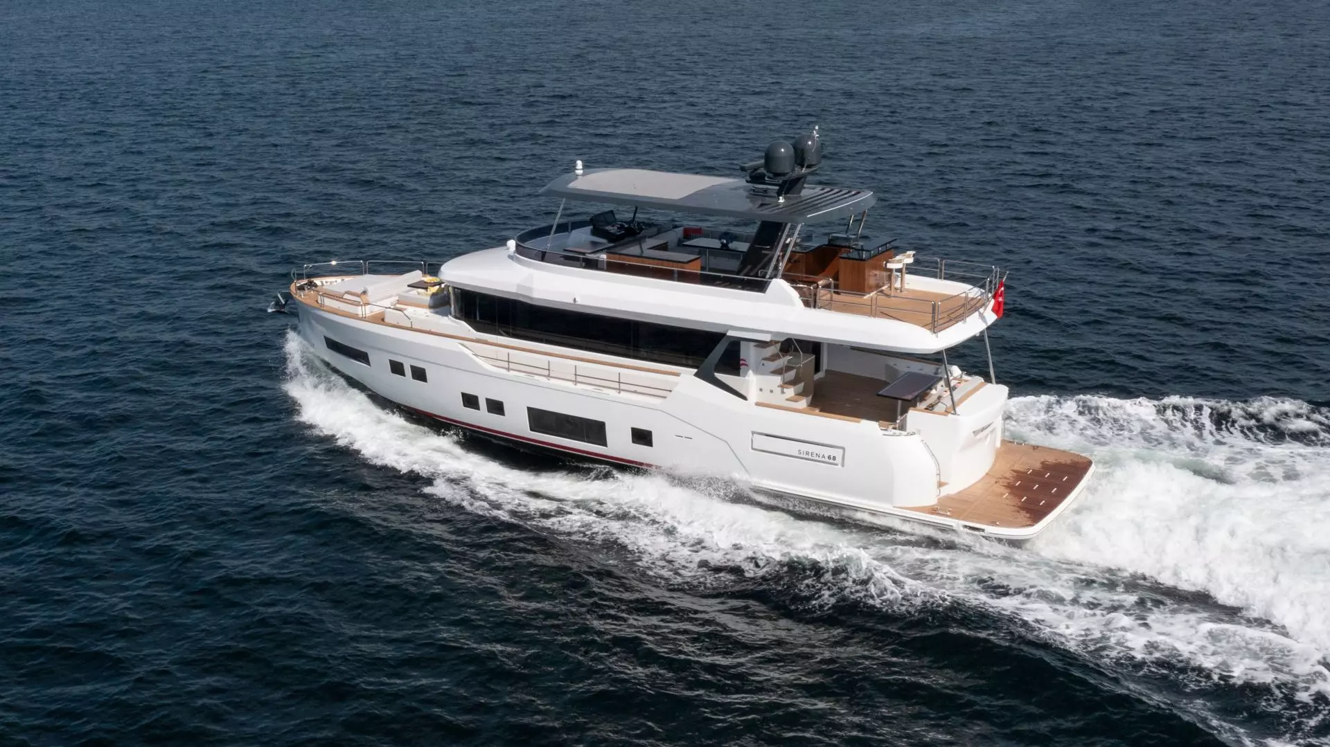 The goal of the Sirena 68 hull design was to offer efficiency at speeds ranging from long-range cruising to planing. A slippery hull with minimal appendage drag gave the range numbers we were looking for, while optional power choices increase the top end.