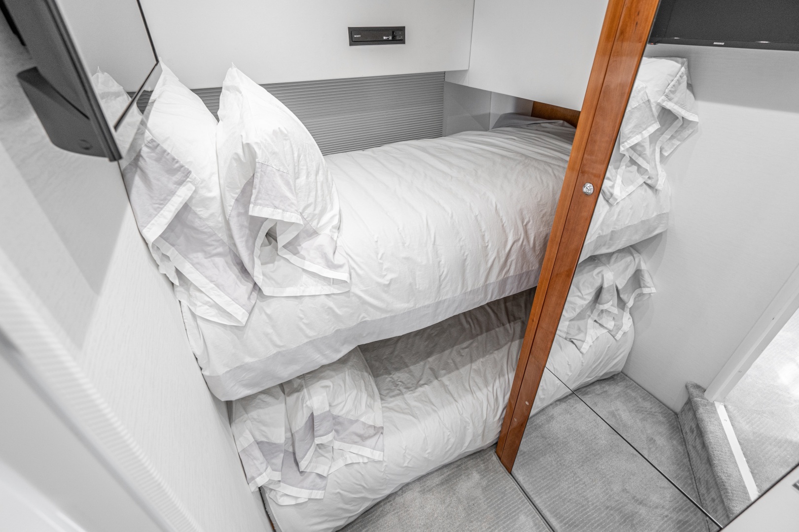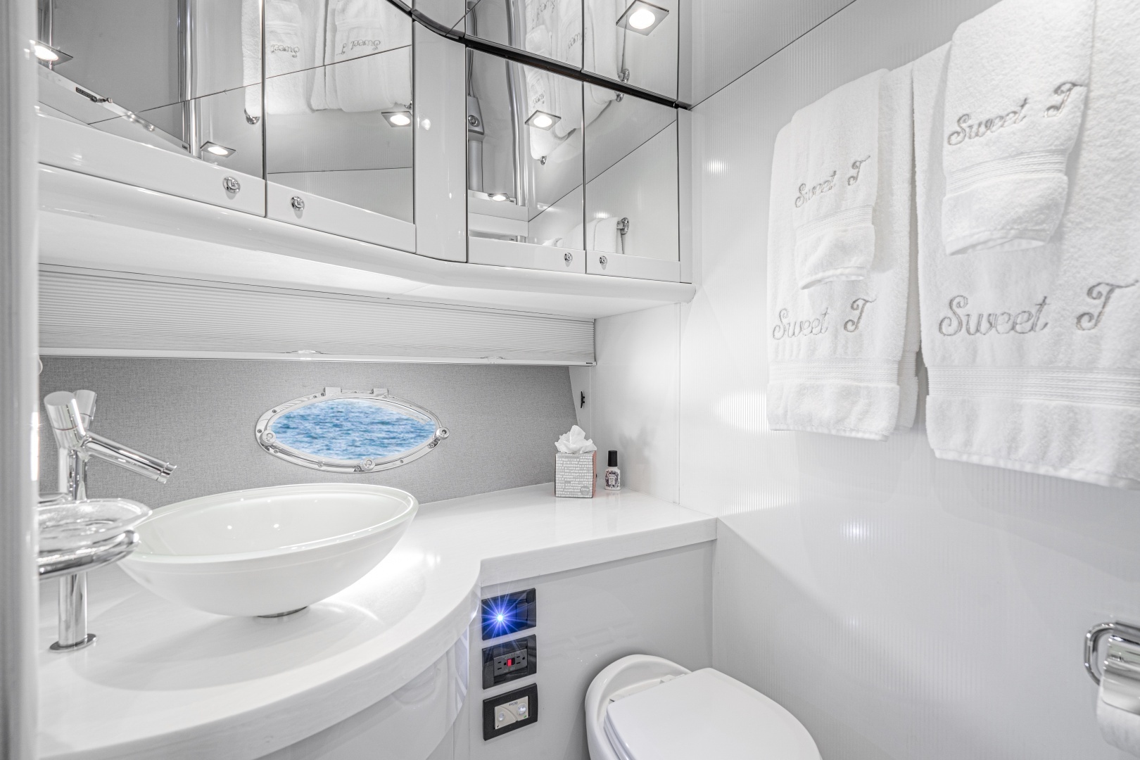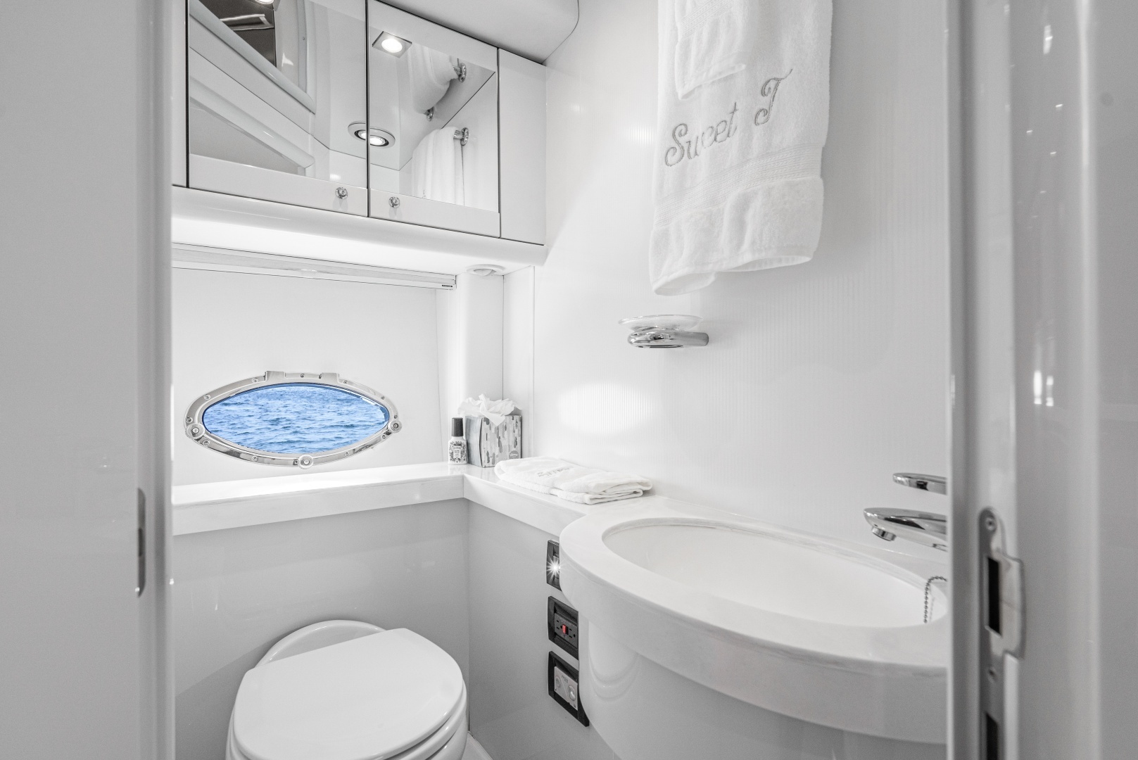PLUS! She’s as fast as she is flawless! The recent repower has catapulted her into the next level of performance making for an exceptionally smooth and stable ride. Backed by a blistering top speed of 49 knots she Turns heads, lifts eyebrows, and always causes excessive grinning - If you’re shopping for a luxury high-performance yacht and want something turnkey, upgraded, repowered, reimagined— and just a little bit unfair to the competition — Then “Sweet T” is it!