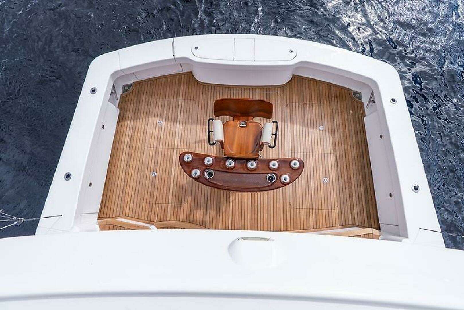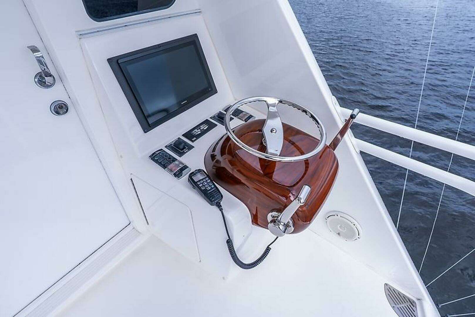 - Electronic single-lever controls for helm pod with integrated bow thruster controls on back deck