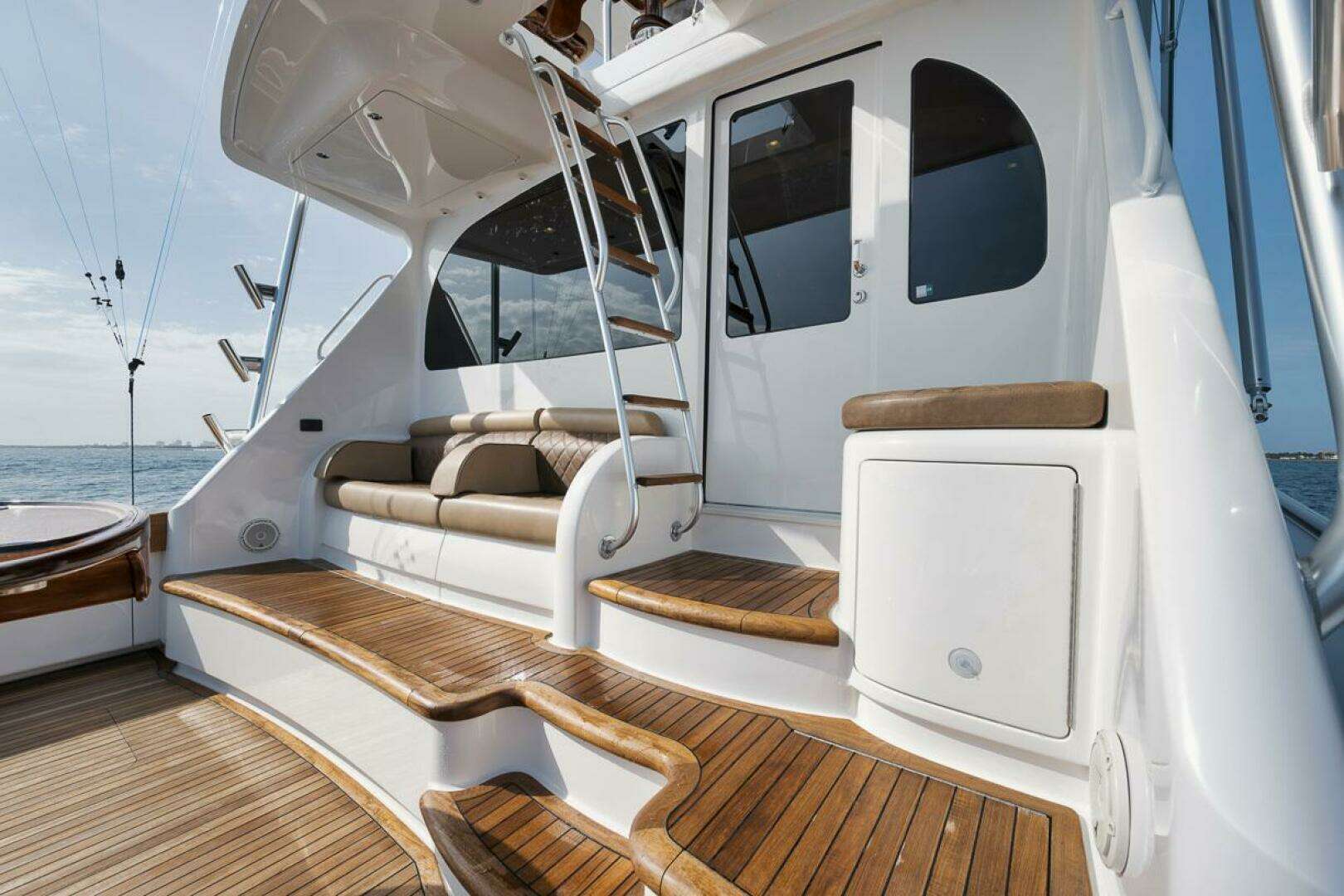 - Six rod holders with polished welds on aft tower legs, three on each side.