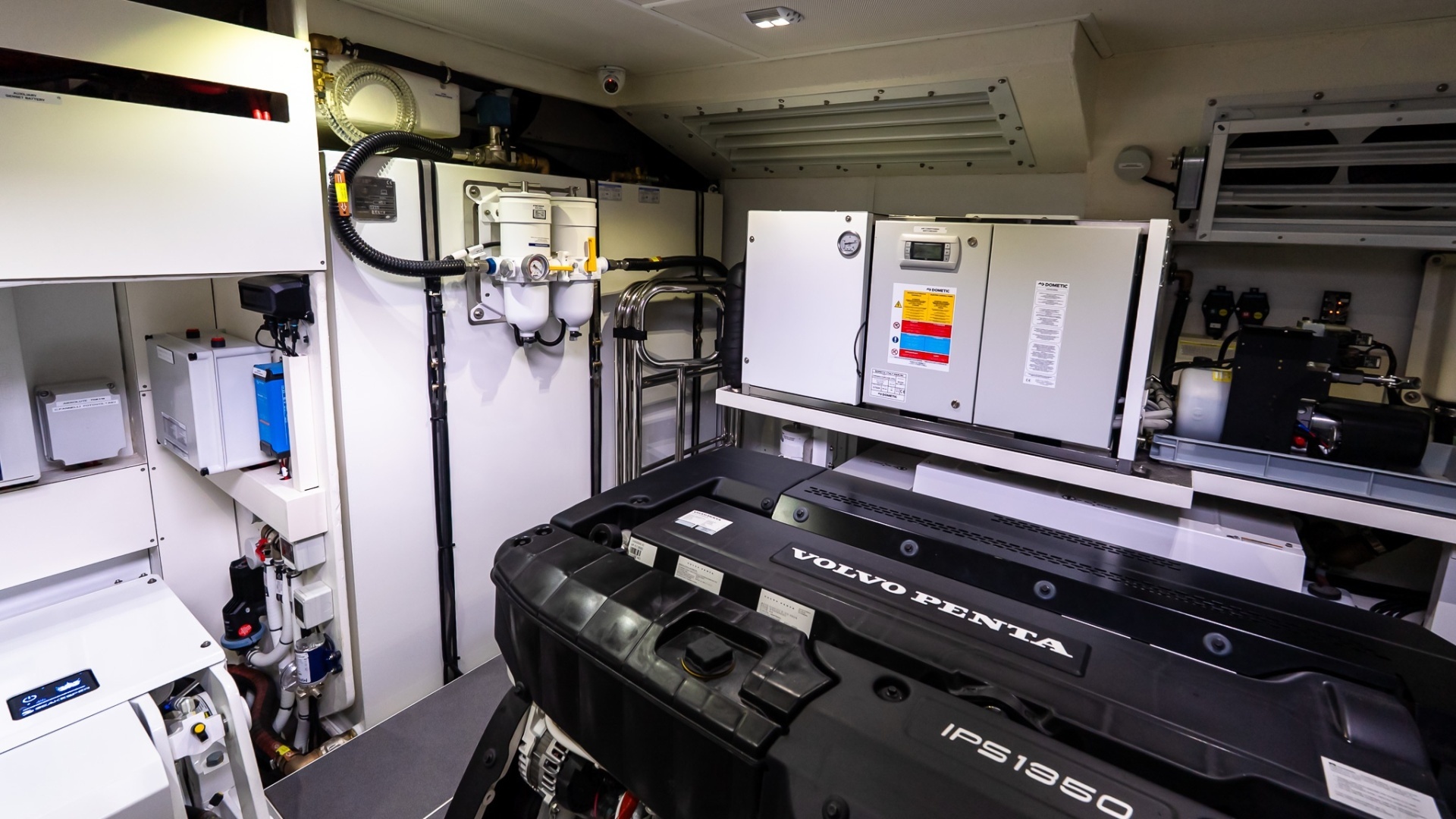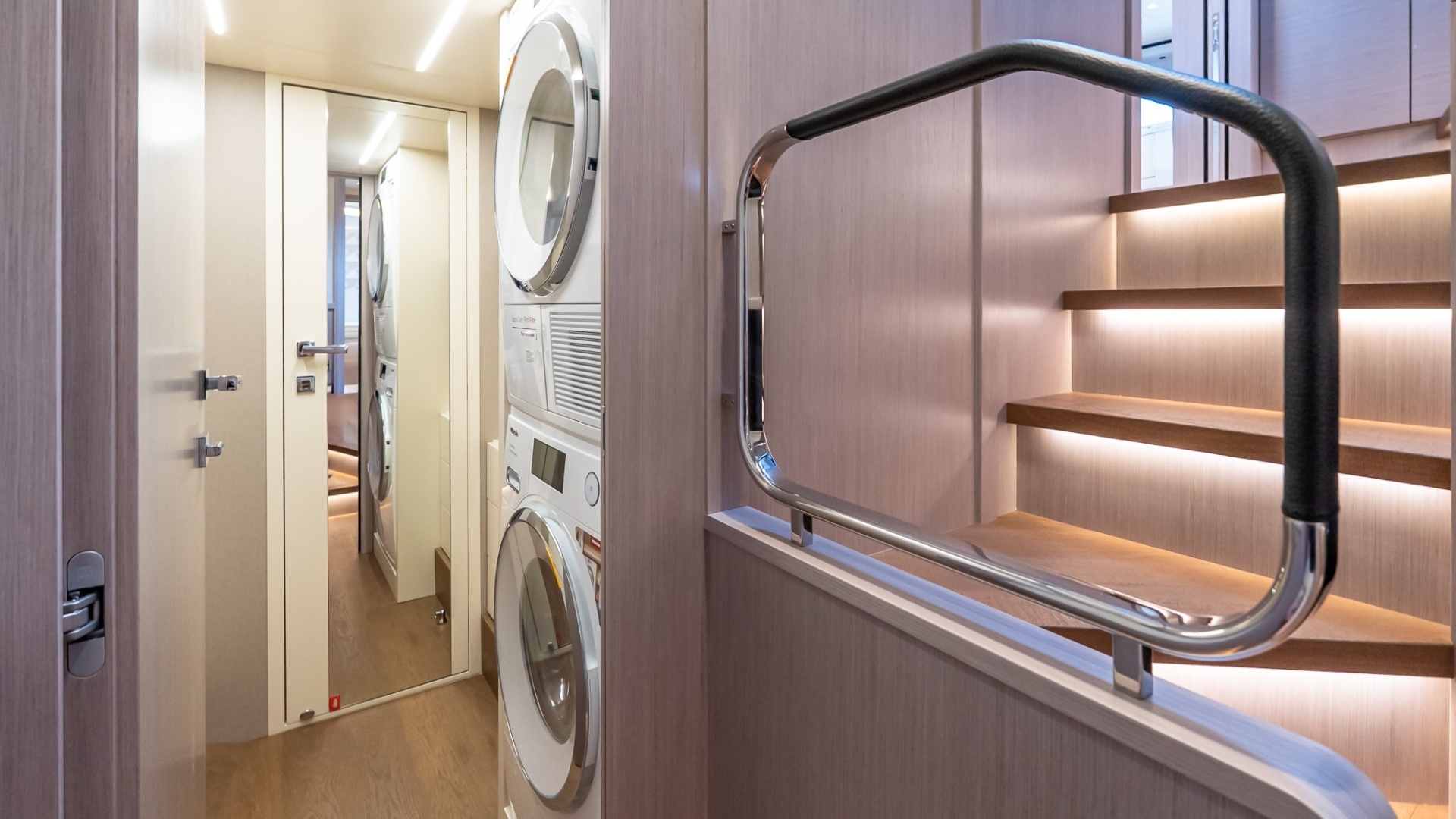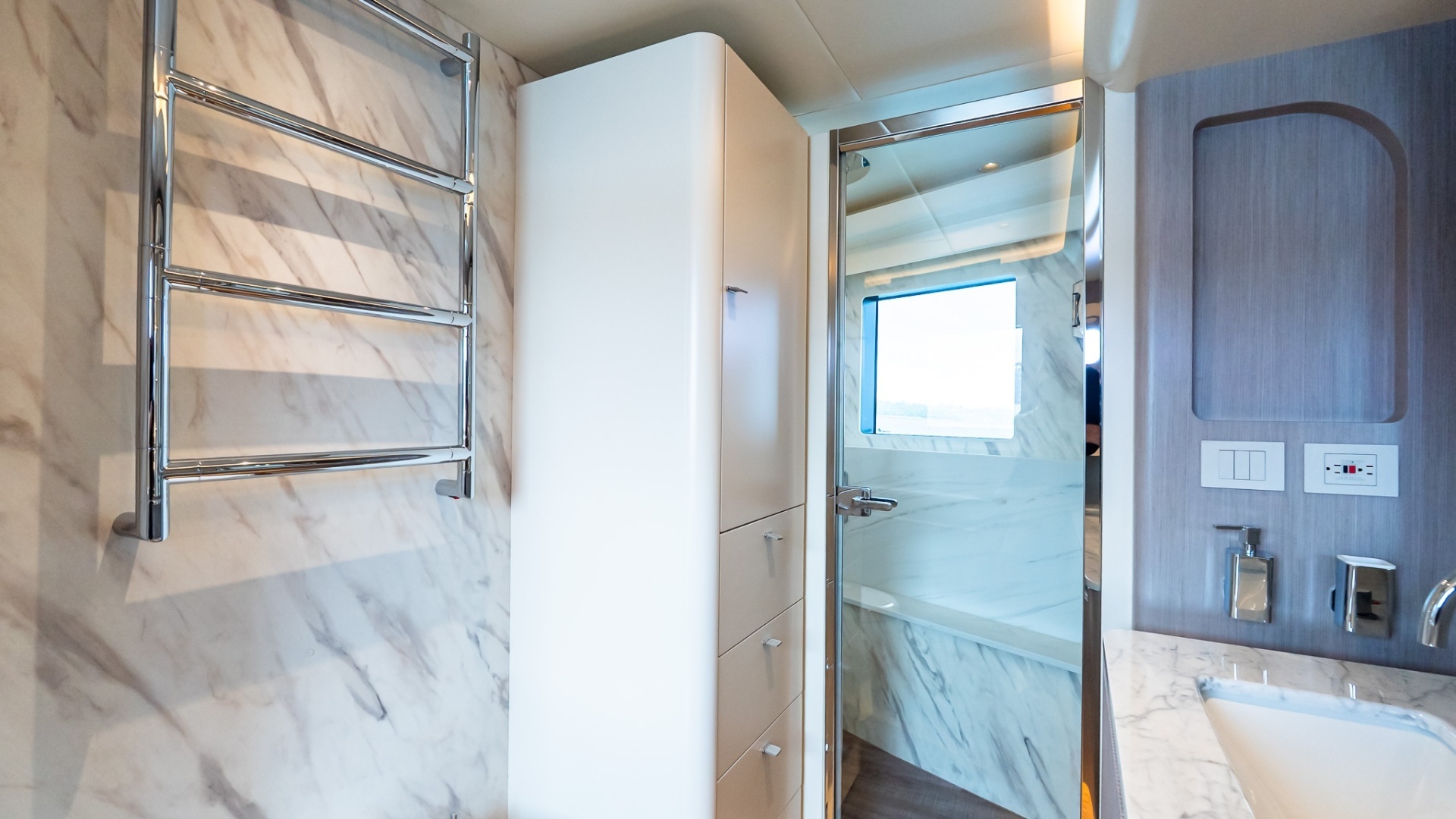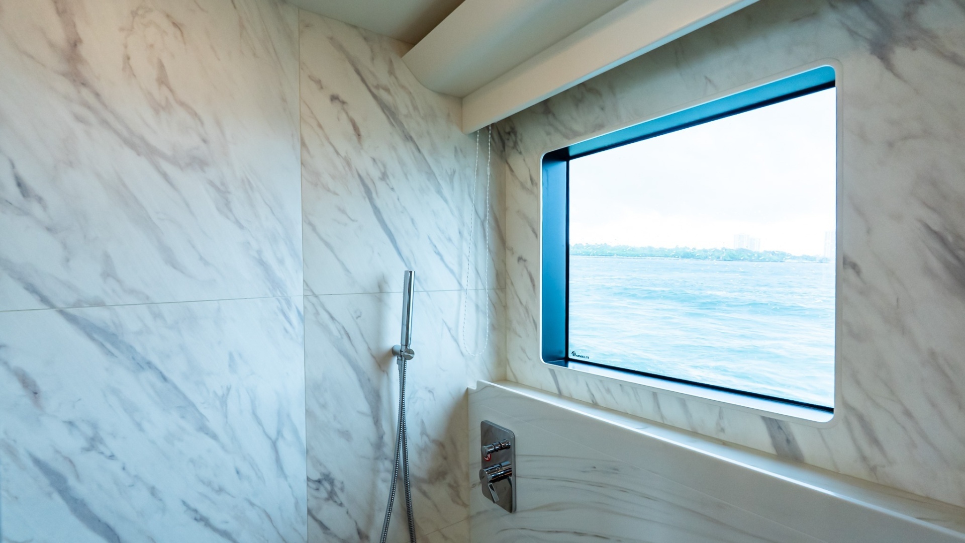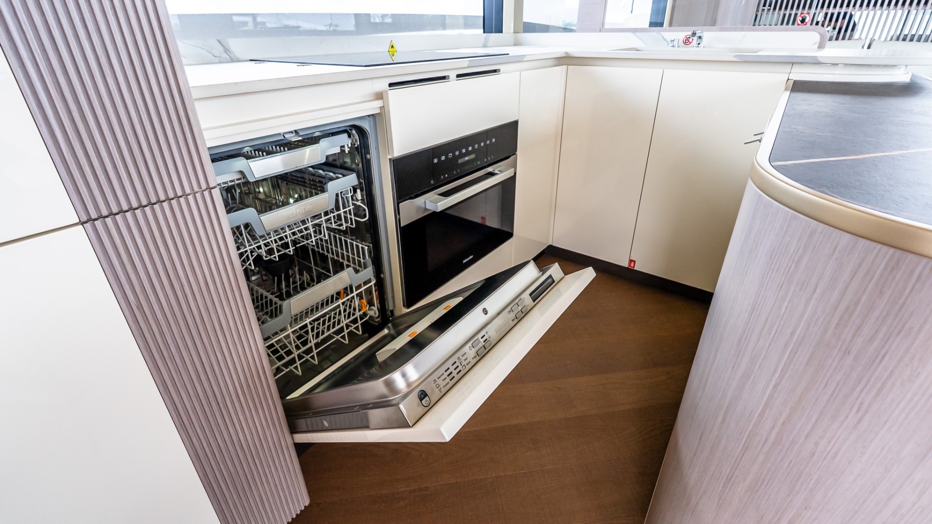 Every detail of the Absolute Navetta 70 expresses the allure of a completely new model, starting from the dynamic and captivating appearance of the exteriors: the flybridge and cockpit terrace are much larger compared to those of other similar yachts. From the spacious terrace cockpit at the stern, where there is a third mooring station, a covered staircase leads up to the flybridge. Here one can enjoy moments of relaxation and socializing, taking advantage of the shade offered by the hard top, which can assume two distinct configurations depending on the customization chosen. It can, in fact, be openable if one opts for coverage through a sunshade, or fixed if one prefers the addition of solar panels, which are lightweight, efficient, flexible, and resistant to the effects of salt water. The interior features an open layout with a spacious kitchen. There are five cabins, each have large windows allowing serene views of the sea. High ceilings throughout the boat allow for a sophisticated design of the living spaces.