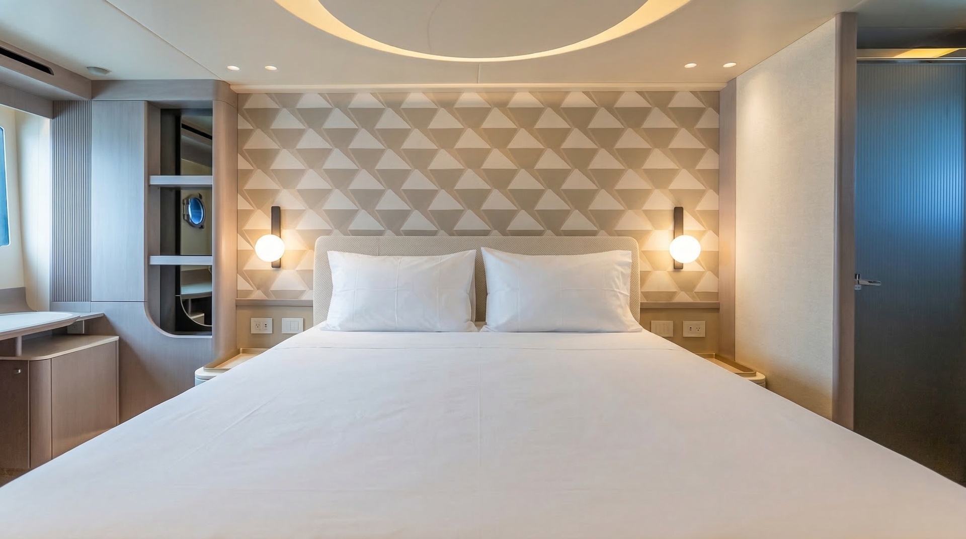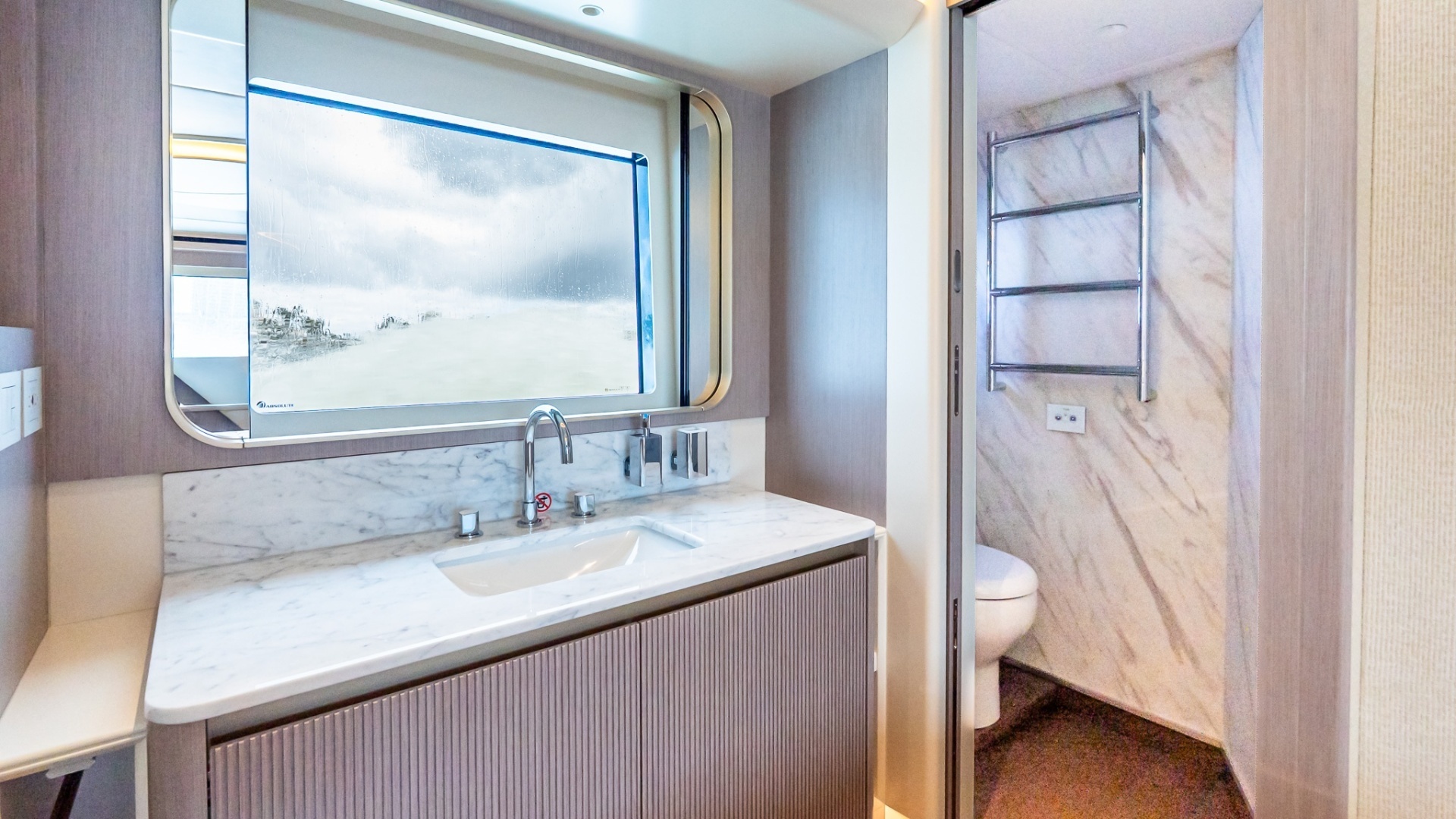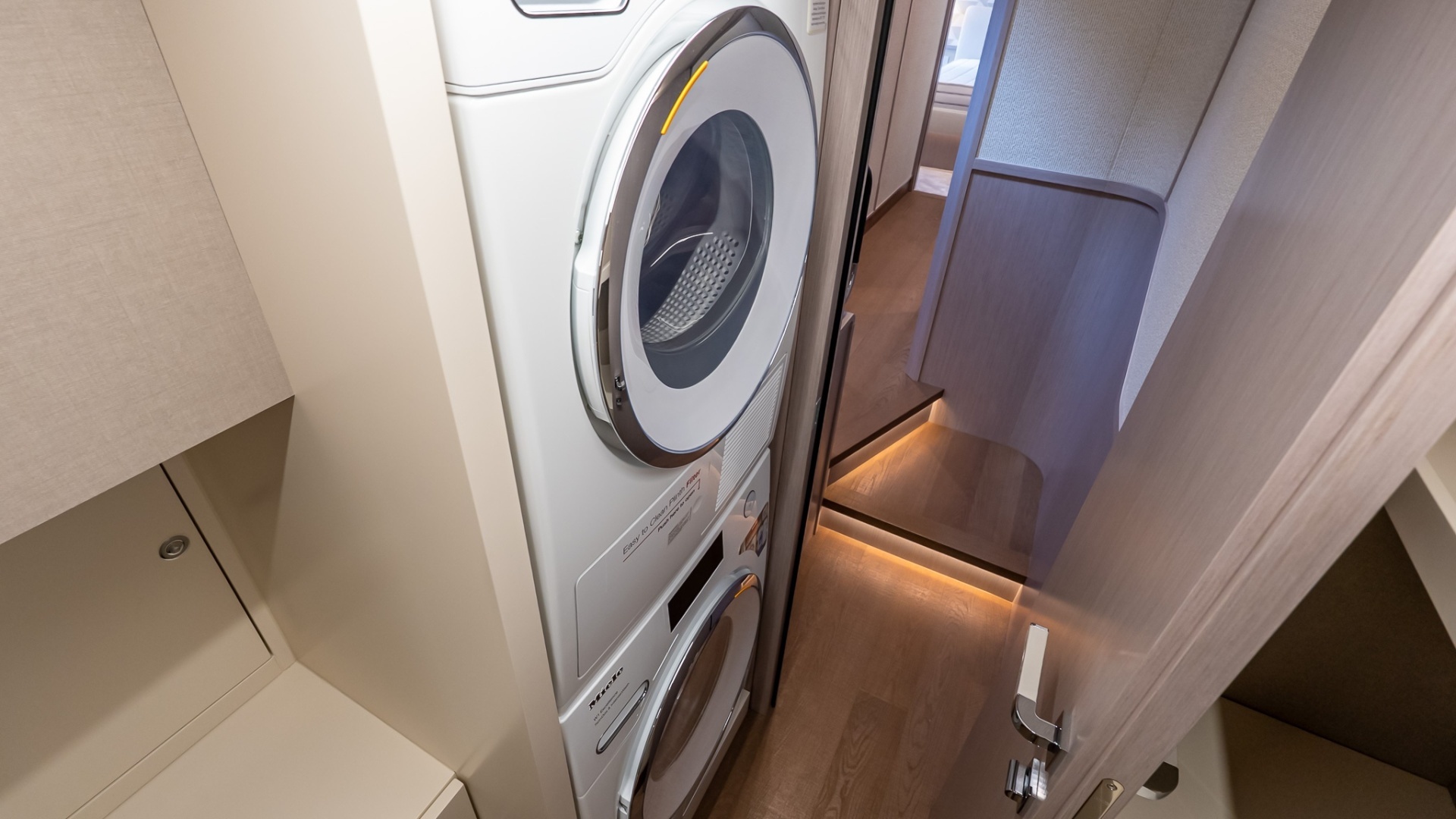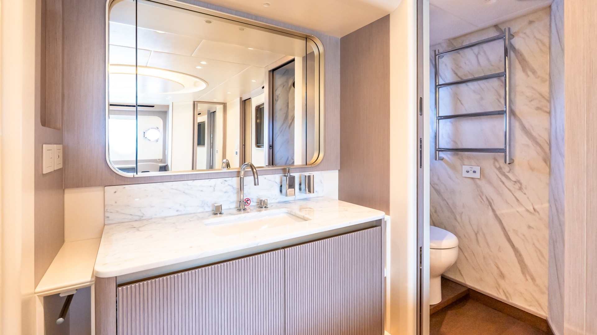 Every detail of the Absolute Navetta 70 expresses the allure of a completely new model, starting from the dynamic and captivating appearance of the exteriors: the flybridge and cockpit terrace are much larger compared to those of other similar yachts. From the spacious terrace cockpit at the stern, where there is a third mooring station, a covered staircase leads up to the flybridge. Here one can enjoy moments of relaxation and socializing, taking advantage of the shade offered by the hard top, which can assume two distinct configurations depending on the customization chosen. It can, in fact, be openable if one opts for coverage through a sunshade, or fixed if one prefers the addition of solar panels, which are lightweight, efficient, flexible, and resistant to the effects of salt water. The interior features an open layout with a spacious kitchen. There are five cabins, each have large windows allowing serene views of the sea. High ceilings throughout the boat allow for a sophisticated design of the living spaces.