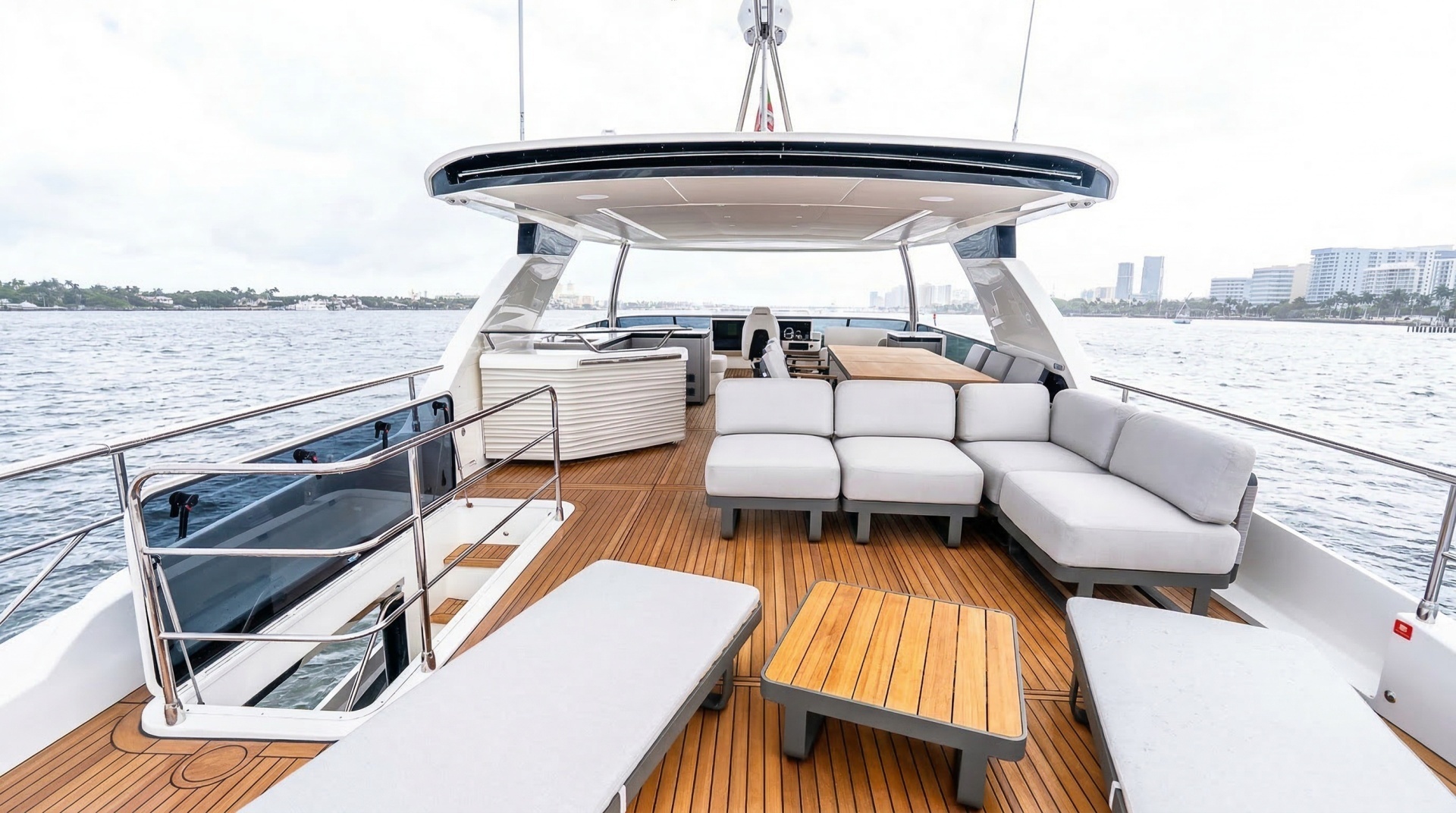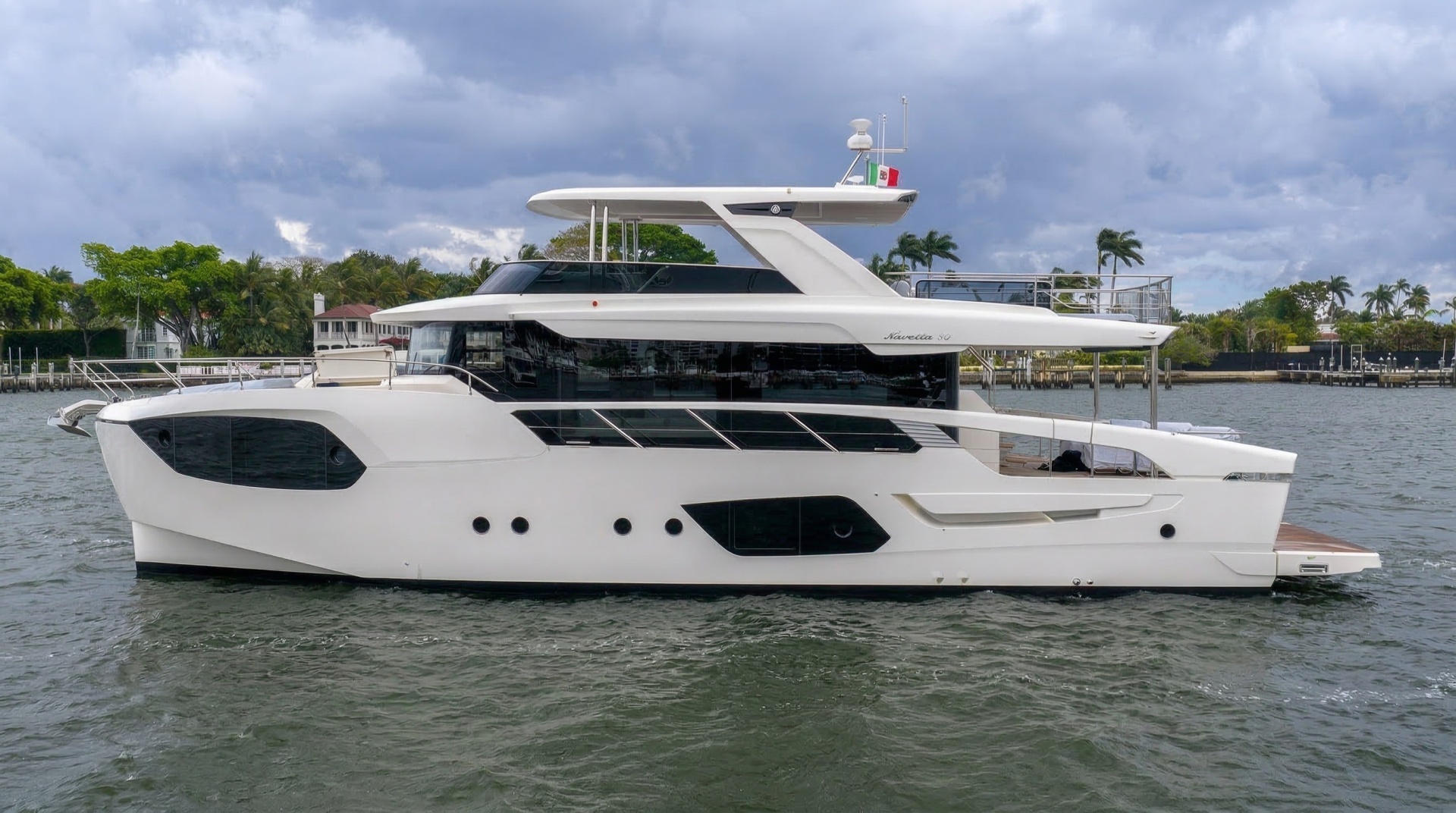 Every detail of the Absolute Navetta 70 expresses the allure of a completely new model, starting from the dynamic and captivating appearance of the exteriors: the flybridge and cockpit terrace are much larger compared to those of other similar yachts. From the spacious terrace cockpit at the stern,