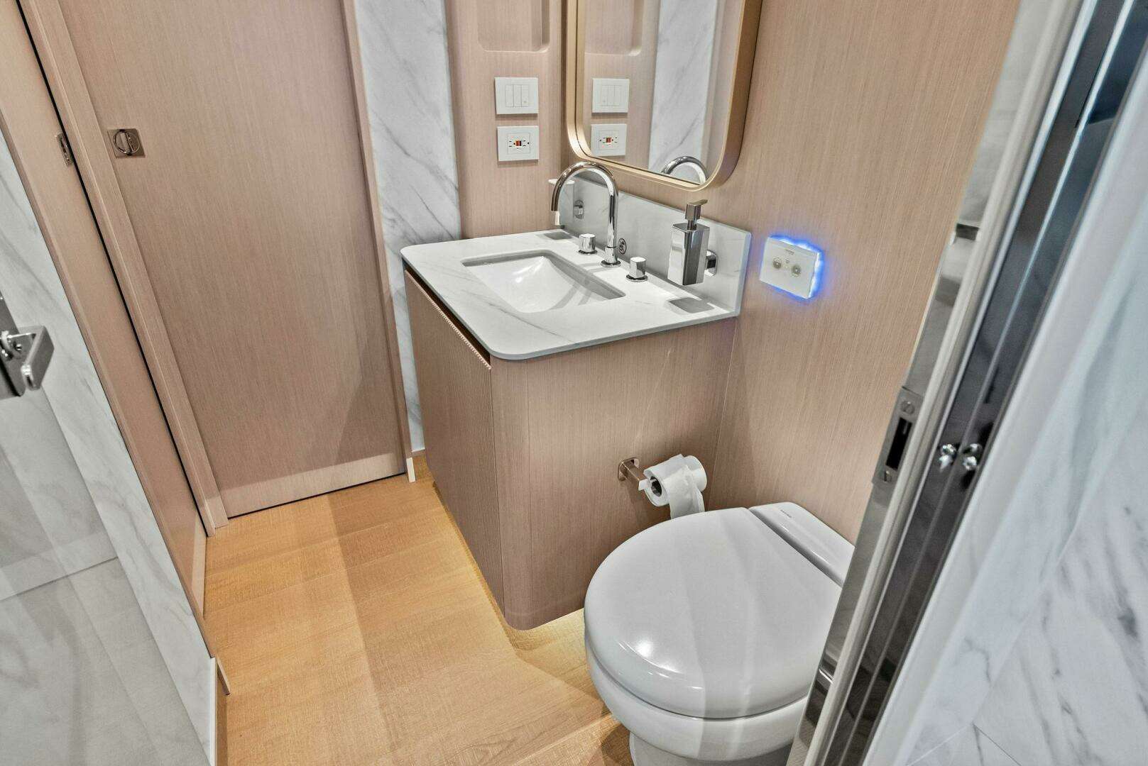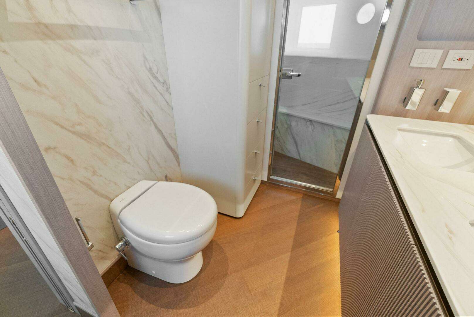 - Watertight Sockets 60Hz Placed in the Cockpit and Aft Flybridge Area