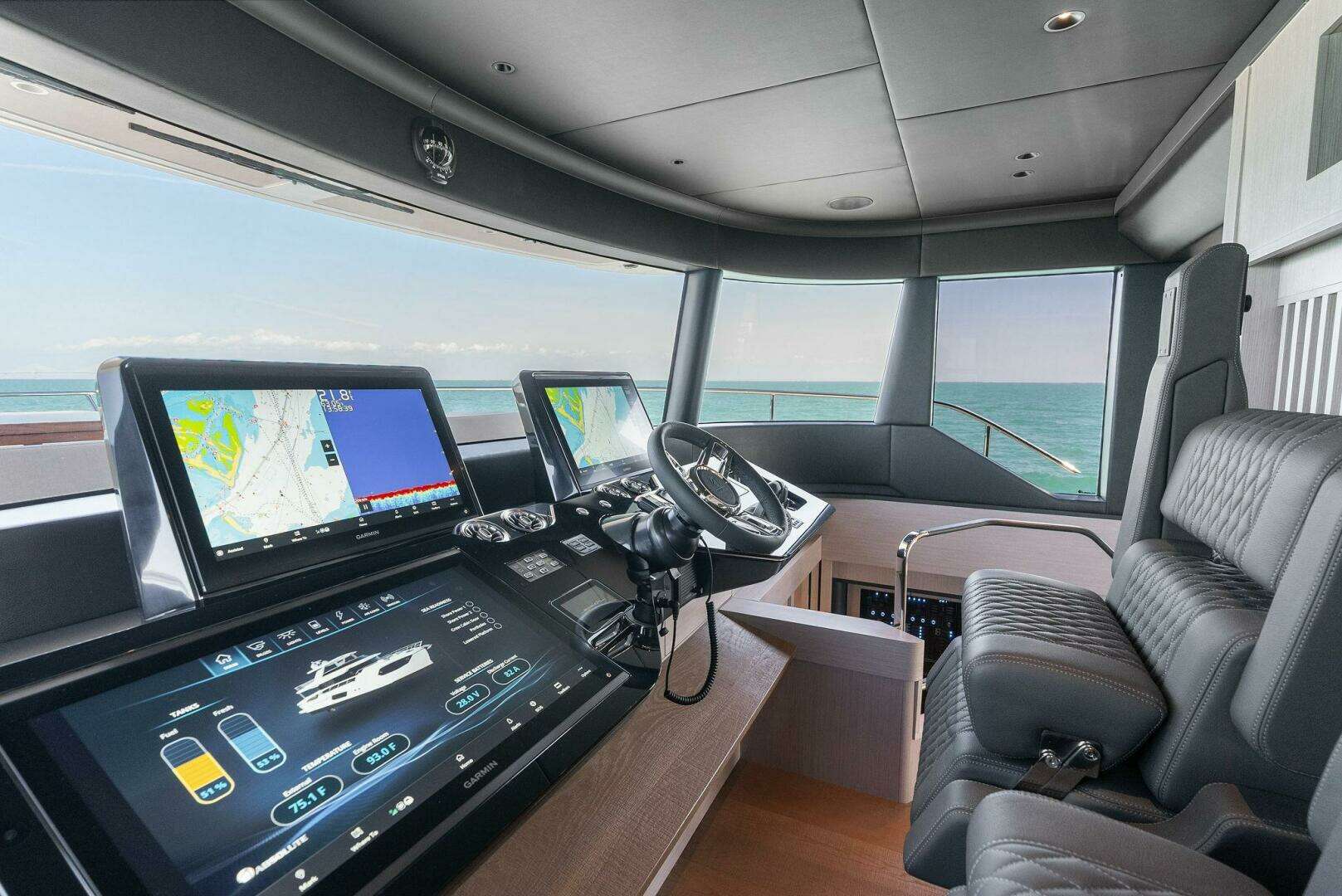 - "Advanced" Display Configuration: Raised Wheelhouse 24" Display (one) and 22" Displays (two). Flybridge Helm 22" Displays (two)