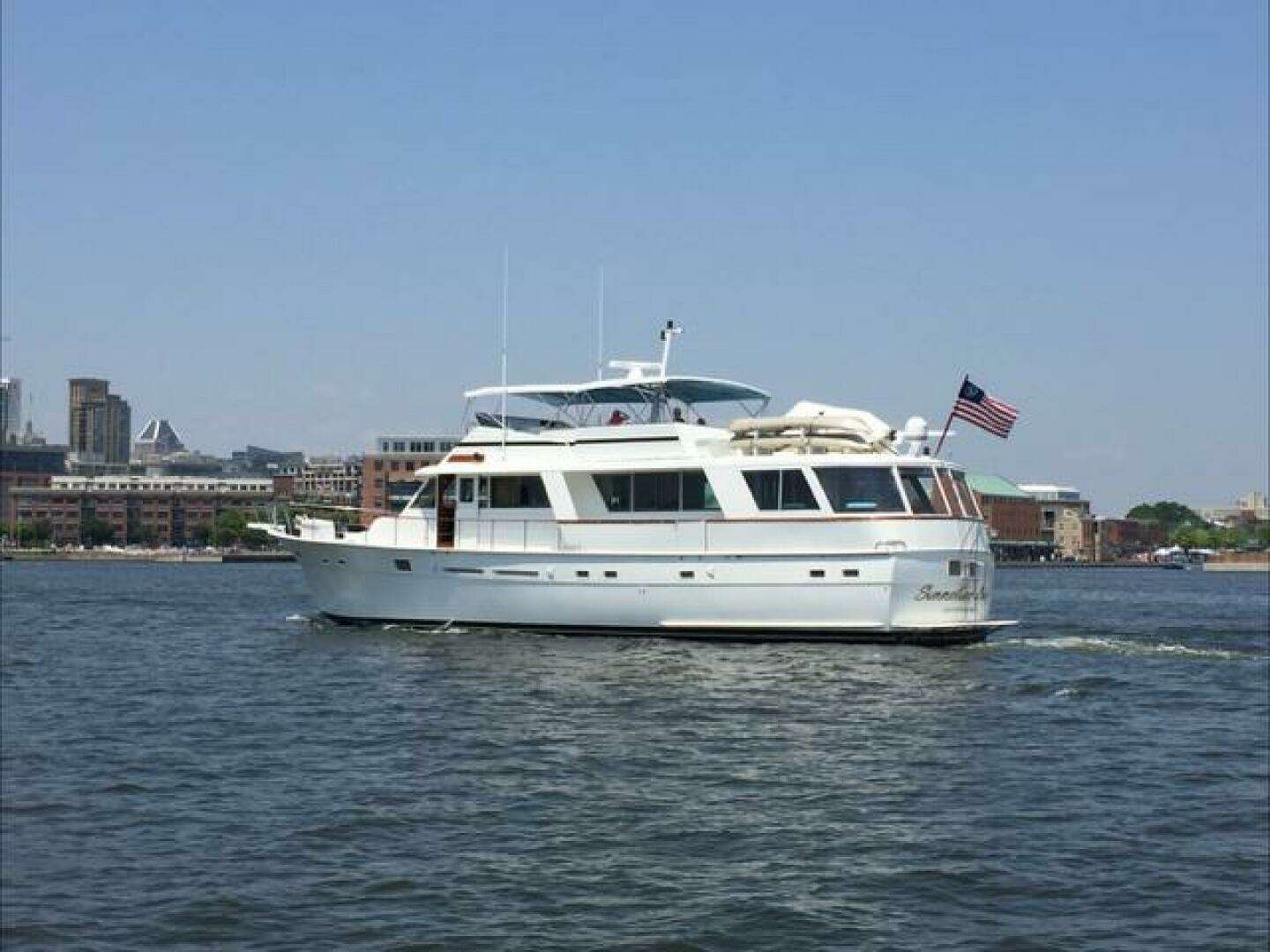 "SUMMERTIME LADY" is an aggressively priced 70' Extended deckhouse Hatteras motor yacht, in excellent condition resulting from a recent major interior refit. Her beautiful teak interior features a five stateroom, four head layout, including a full beam Master with a centerline queen berth aft. This 70' Hatteras Yacht offers an expansive flybridge and aft deck with plenty of seating with al fresco areas. With only 1400 engine hours SMOH, two newer 21.5KW Onan generators, an array of amenities and an extensive list of upgrades/updated including, Garmin Electronics, custom furniture, Gibraltar countertops, appliances, newer Headliner and mini-LED lighting throughout and much more.