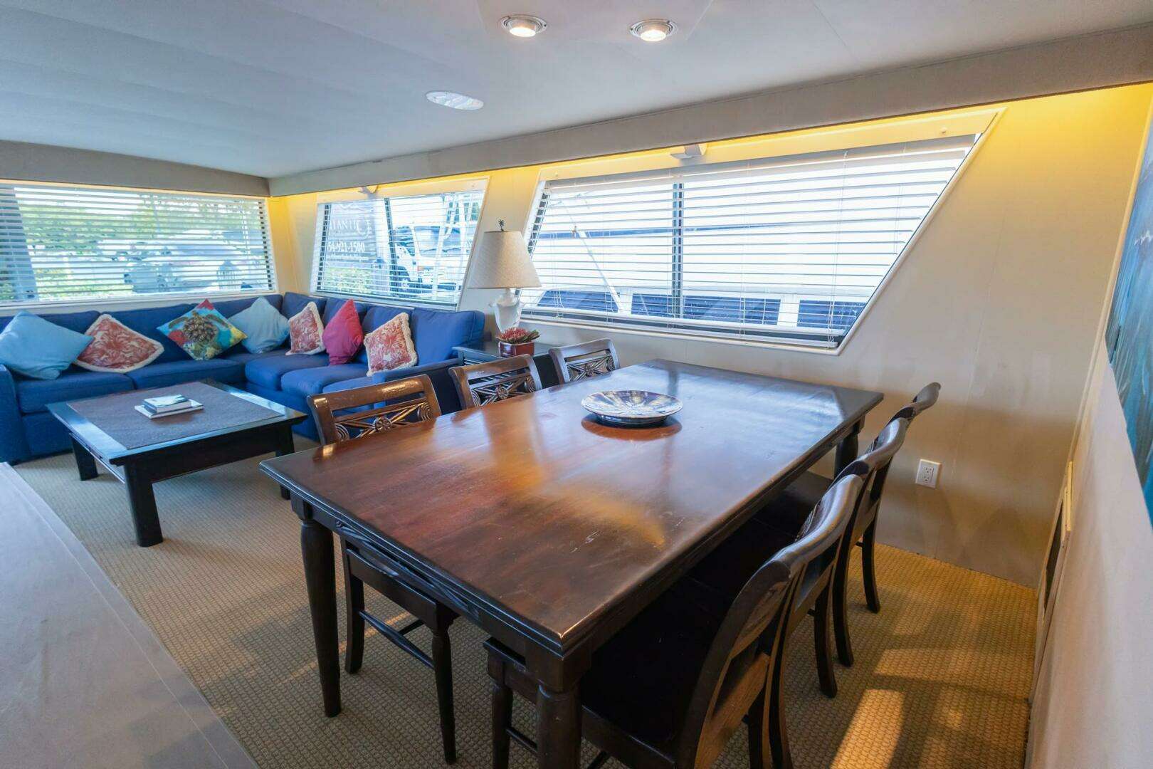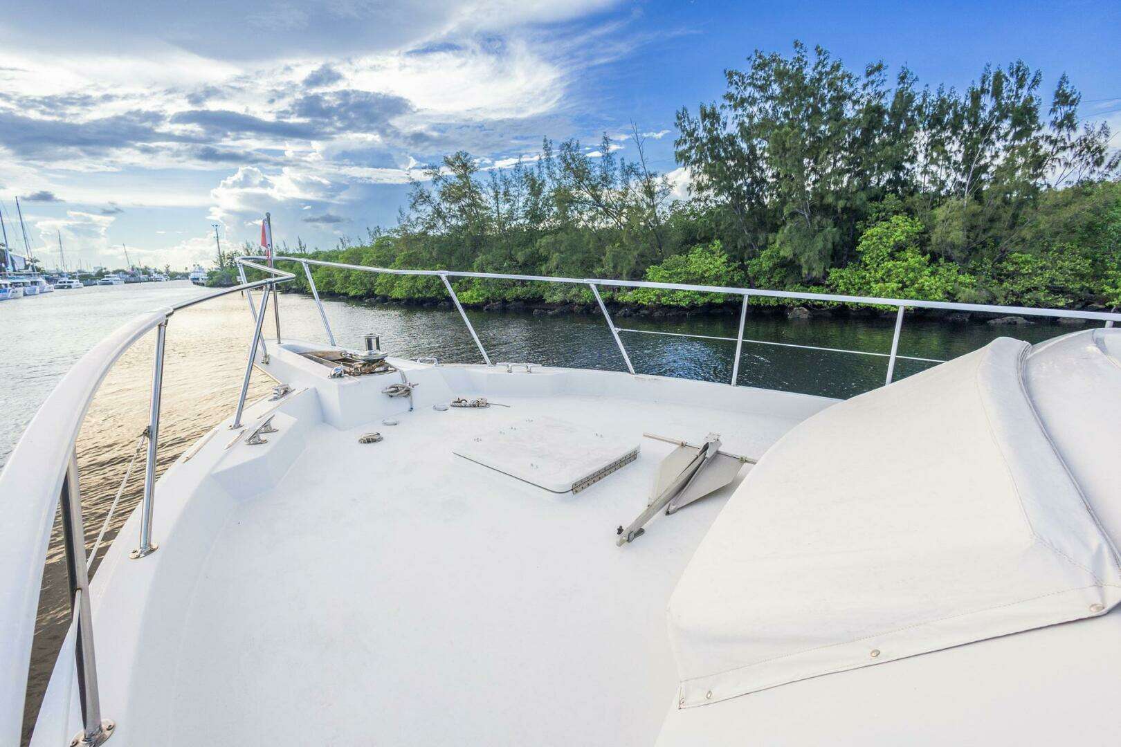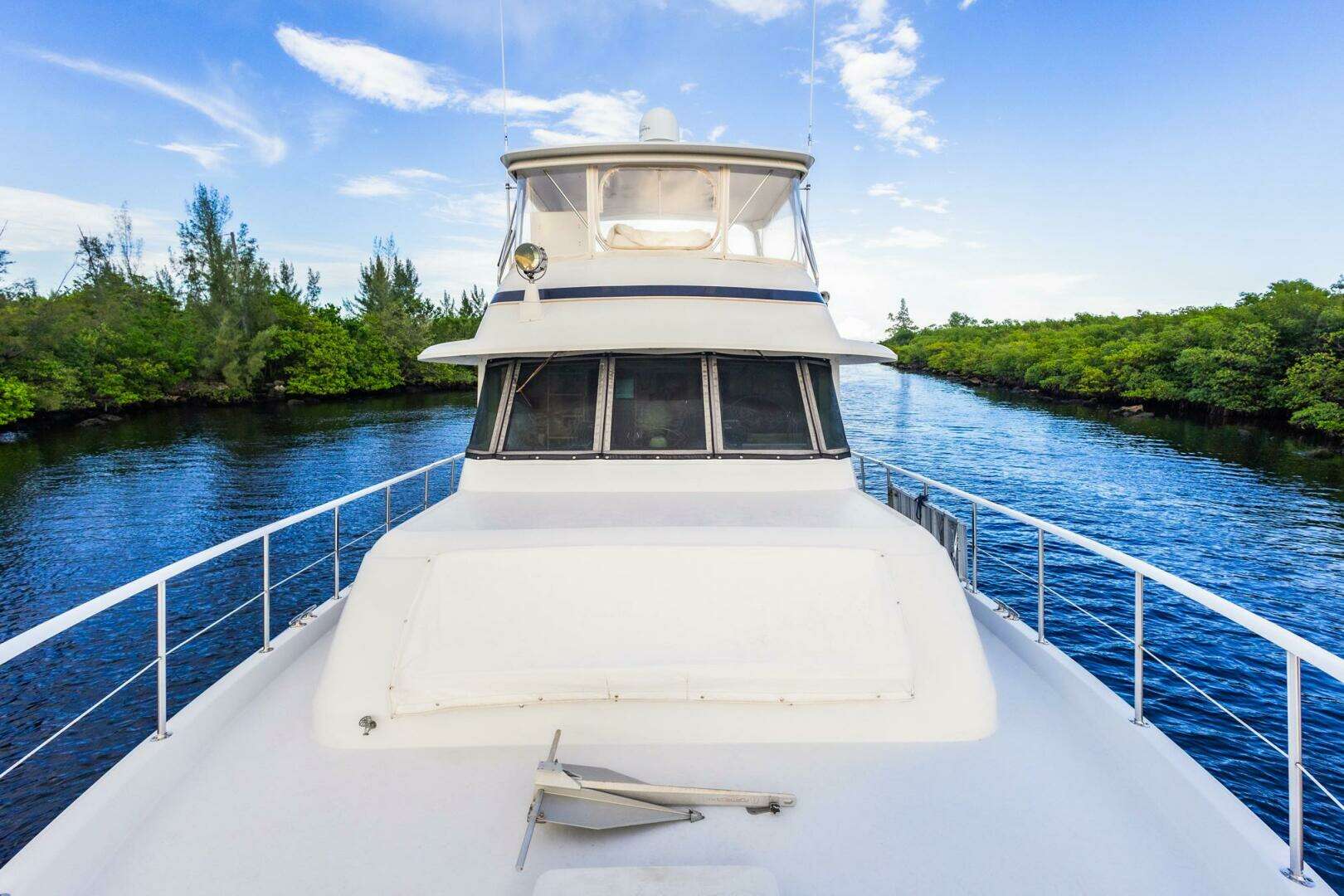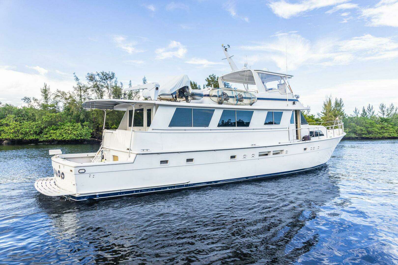 Notable Upgrades: "JUNKANOO"! She is a classic Hatteras Widebody Cockpit Motoryacht that has been continually upgraded and maintained. The highlights of the refit, completed in 2005, include the following: Flybridge windshield removed for more modern styling with new 3-side Stratoglass enclosure (2023) Precision Marine custom aluminum frame aft deck/cockpit sun awning Complete blister bottom job in 2023 with bottom paint 25kW Northern Lights generator in addition to vessel's 20kW Onan All new galley countertops and cabinets, rebuilt refrigerator 2023 KVH TracVision satellite TV system BOSE Surround (Salon) / Fusion (Bridge) 1800 GPD Reverse Osmosis of Florida (FCI) watermaker Complete Naiad stabilizer rebuild with fins increased from 4 1/2 to 7 1/2 for substantially increased stability. Serviced with new seals and bearings – 9/2023 Bow thruster installed in 2023 (with remote) All heads changed to freshwater system – new electric Raritan head + Electro-San treatment system (1/2025) New dripless shaft logs (2023) FLO-SCAN gauges and fuel polishing system New ASKO washer & dryer (2023) New main and house batteries (9/2023) Custom setup for easy anchoring with modified anchor chute for 110 lb. Bruce anchor New water heater (2025) (2) new A/C pumps (2025) New generator batteries Many other upgrades and updates will be listed in the areas where located. |