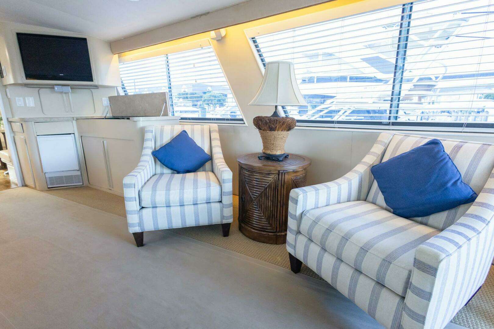- Two Pompanette helm seats with cushions