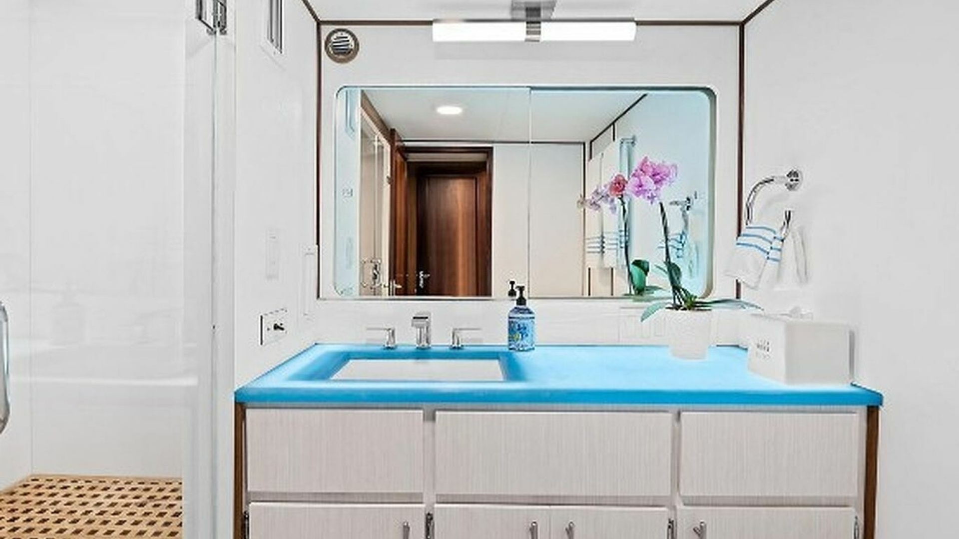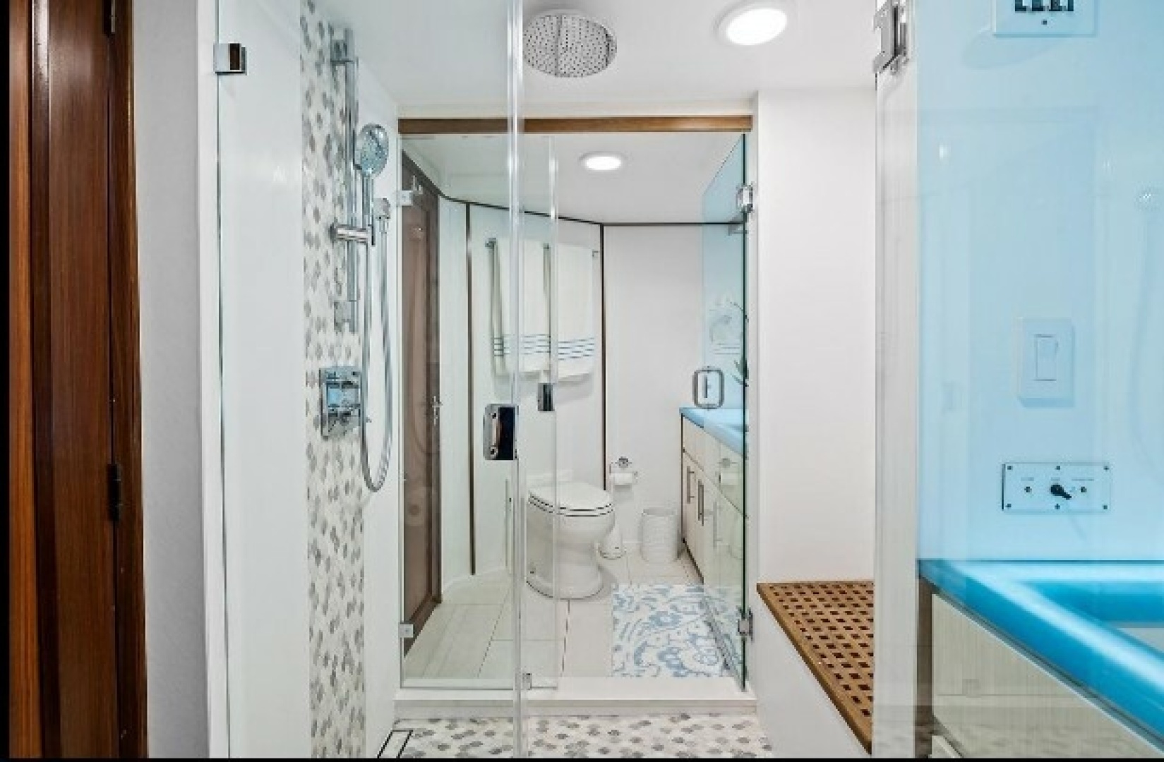 The three guest staterooms are located forward on the lower deck and are accessed via a stairwell forward in the pilothouse. The VIP stateroom which is aft in the guest accommodation area features a queen berth with ensuite head. Moving forward to port is a guest stateroom with two twin berths and forward is another stateroom with twin bunks. There is a stacking washer/dryer in the foyer and an access hatch to the generator room.
