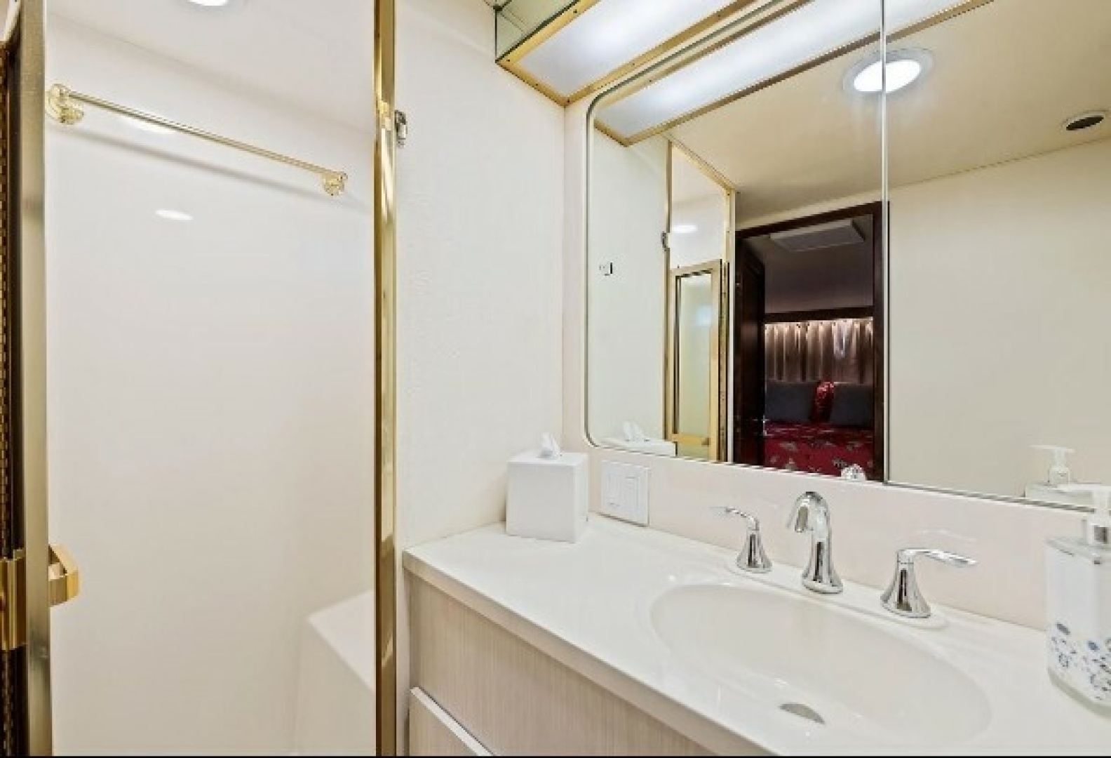TOP GUN is a classic four stateroom 70' Hatteras Motor Yacht is excellent condition. Her four staterooms are all located below deck. The master stateroom is aft and is accessed via a stairwell located on the starboard side of the main salon. The master features a king-size berth with separate his and her heads which share a large walk-in shower between the baths. Entrance to the engine room with her twin rebuilt Detroit Diesel 12V-71 engine is forward of the master stateroom.