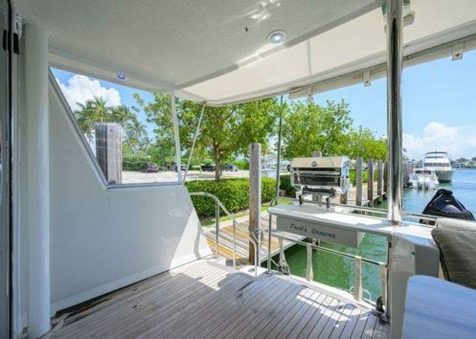 - Flybridge and bow lounge reconfigured for entertaining, with carbon fiber awning