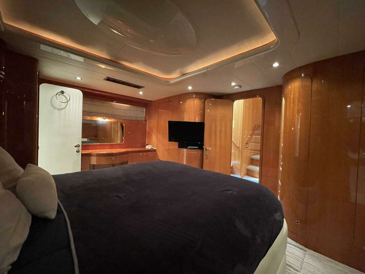 - Portside curved stairwell leading to flybridge