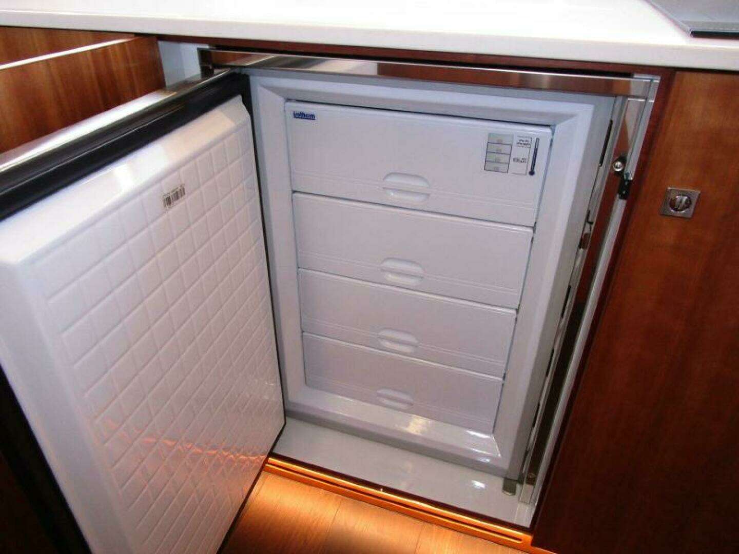 A sliding door leads to the Salon with a large L-shaped settee to starboard and smaller love seat opposite.