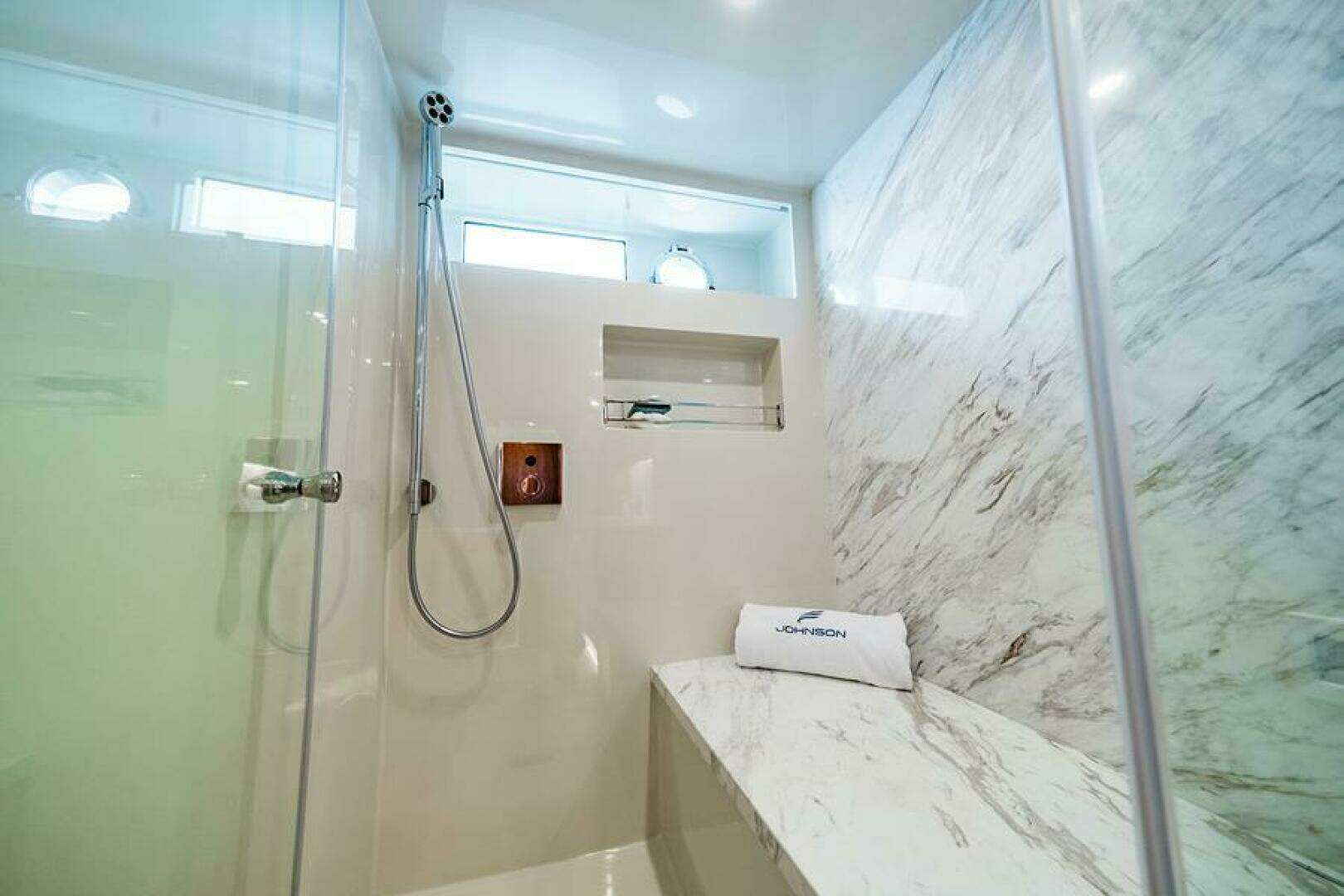 "INDIGO" is the first of the new 70’ Johnson models, replacing the 65’ with the addition of an aft crew cabin and a hydraulic tender platform. Boasting four cabins, three heads and a private crew suite aft, the 70’ has the amenities of larger vessels. “At Rest” stabilization, hydraulic bow and stern thrusters, sewage treatment, a full Garmin suite of electronics, watermaker, and more make the Johnson 70’ almost impossible to duplicate at this price point!