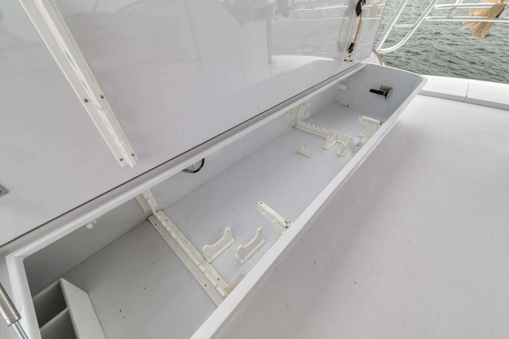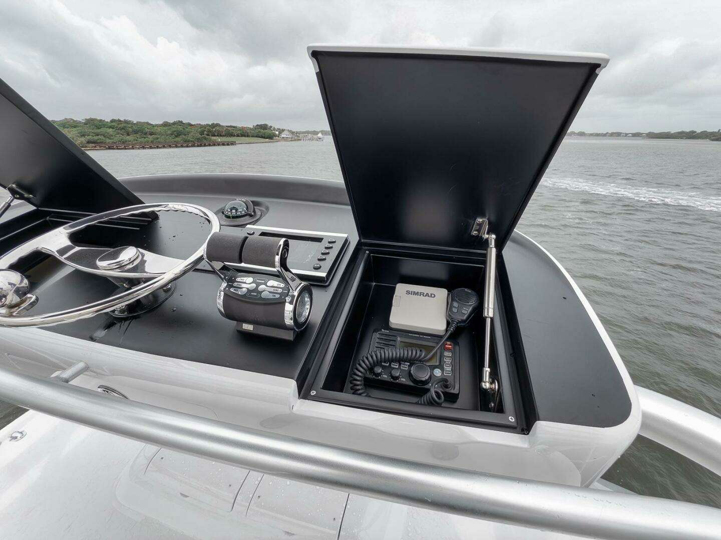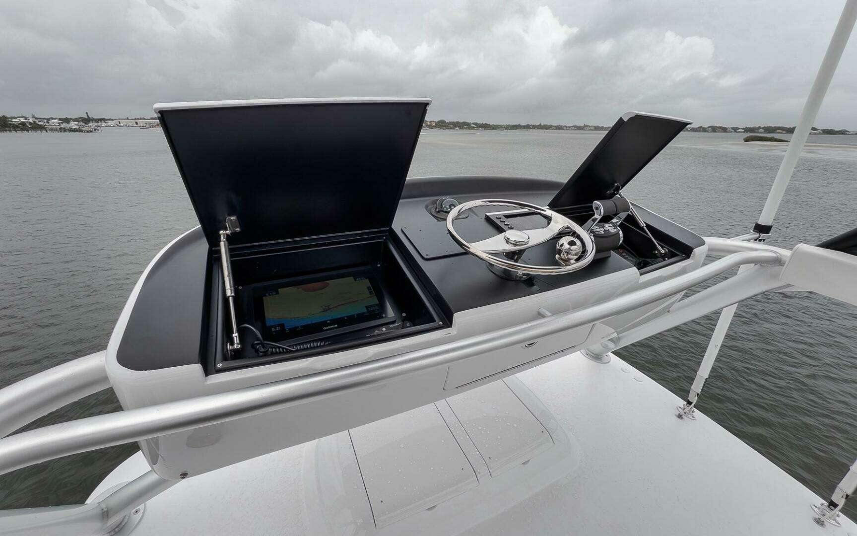 The lazarette is designed with both functionality and accessibility in mind—an essential feature for any serious fishing vessel. Accesses through the aft cockpit hatch, it’s neatly laid out for serviceability, with clean rigging runs and well-secured hardware.