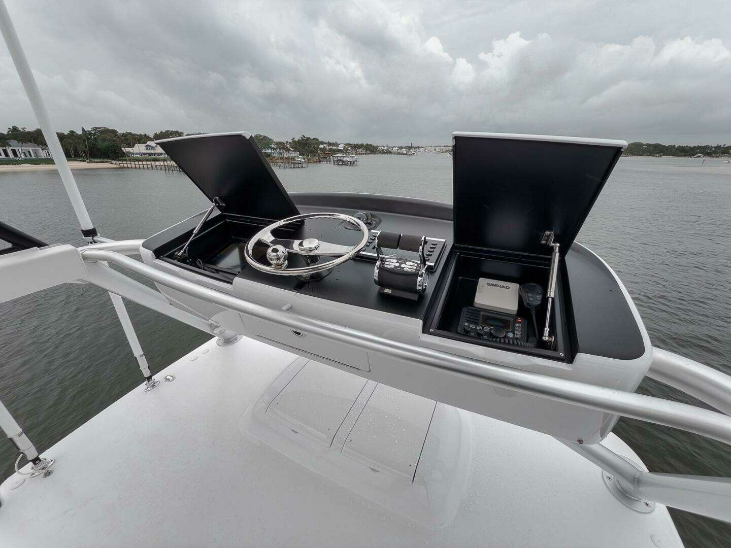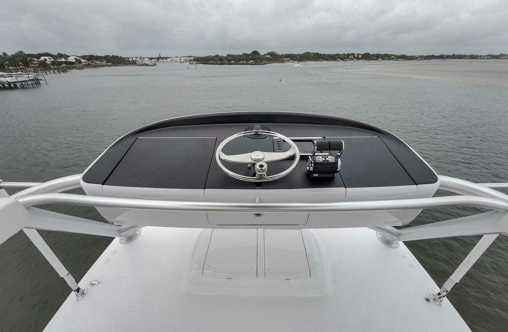 The tower on "Reel Lax" is a finely crafted and highly functional feature, built for serious sportfishing performance while complementing the yacht’s sleek, custom profile. Constructed by a top-tier tower builder—Palm Beach Towers—the structure is lightweight yet rugged, designed to provide excellent visibility and durability in offshore conditions.