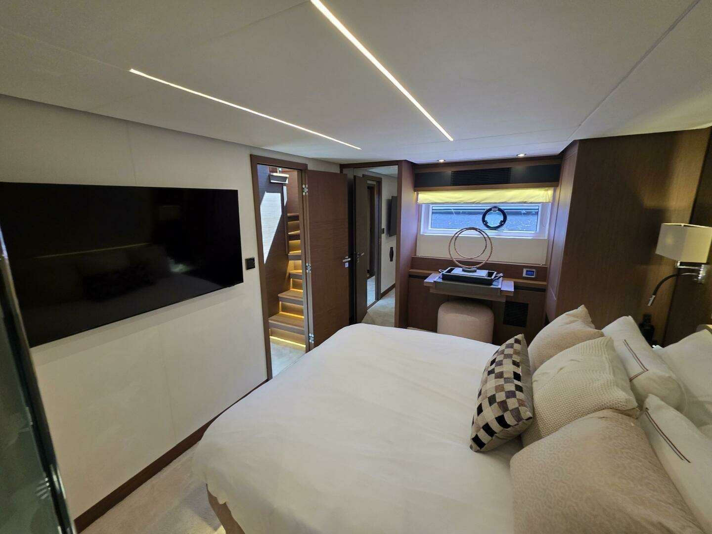 Private Owner's Suite: Located forward, this luxurious suite includes a king-sized berth, a comfortable sofa, a private walk-in closet, and large panoramic windows for a serene experience