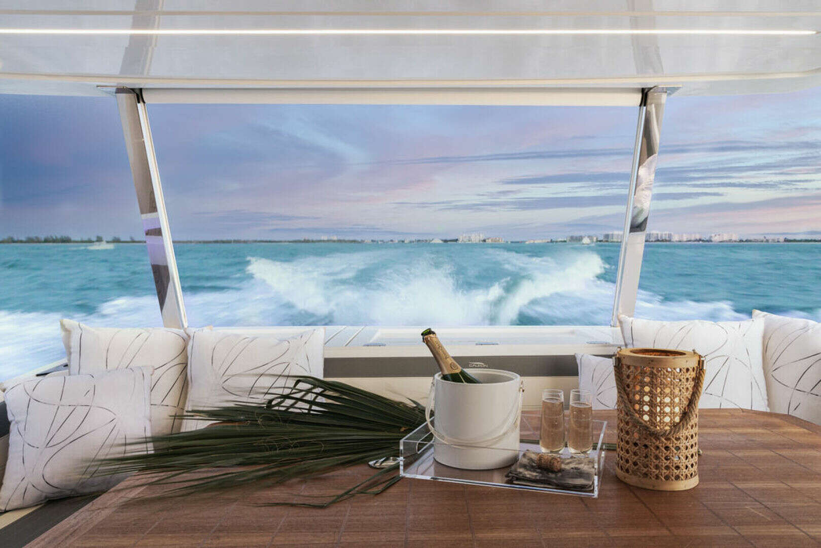 Includes signature fold-out balconies that extend the cockpit living area over the water.
