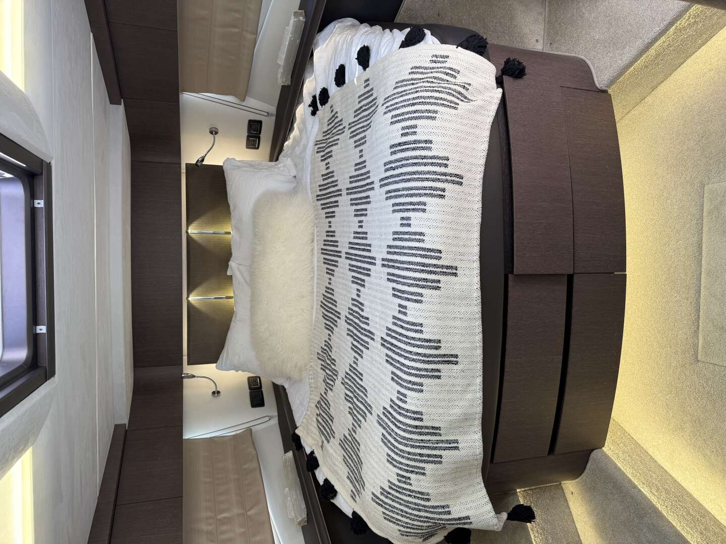 Features a Seakeeper stabilizer for improved stability at anchor and while cruising.