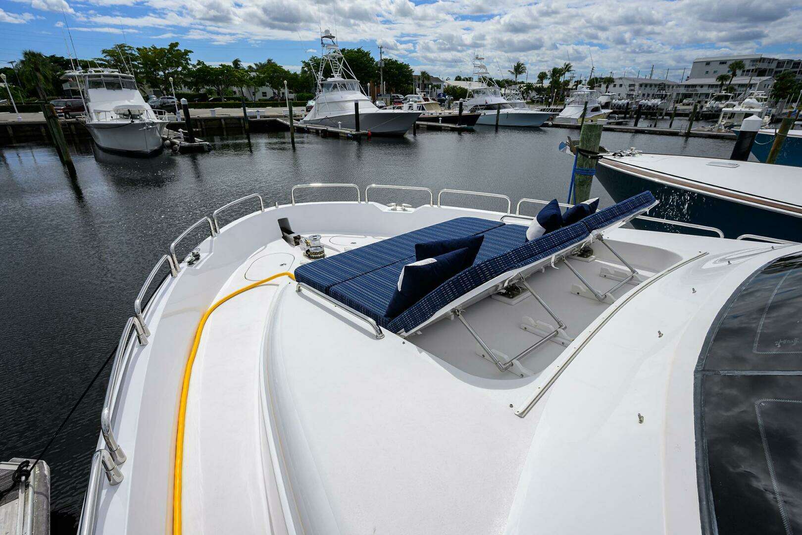 SAPPHIRE is a special 72 Hatteras. Fully customized at the original build, the notable changes are hard sides on the flybridge enclosure, (4) AC units on the FB, and upgraded stabilizer fins. She has new soft goods, all maintenance up to date and low engine hours.