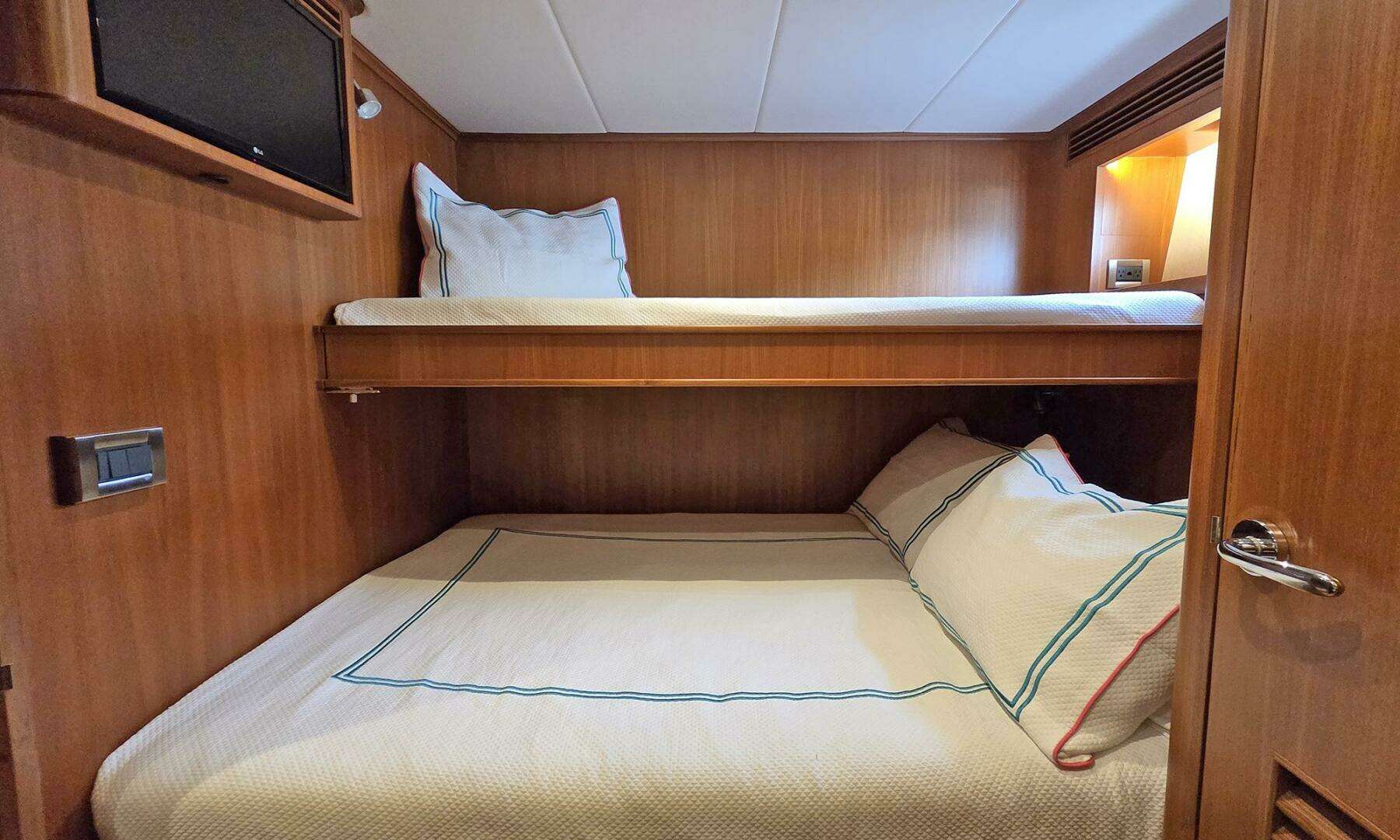 - HD TVs in salon, master, VIP, guest and crew, plus a portable