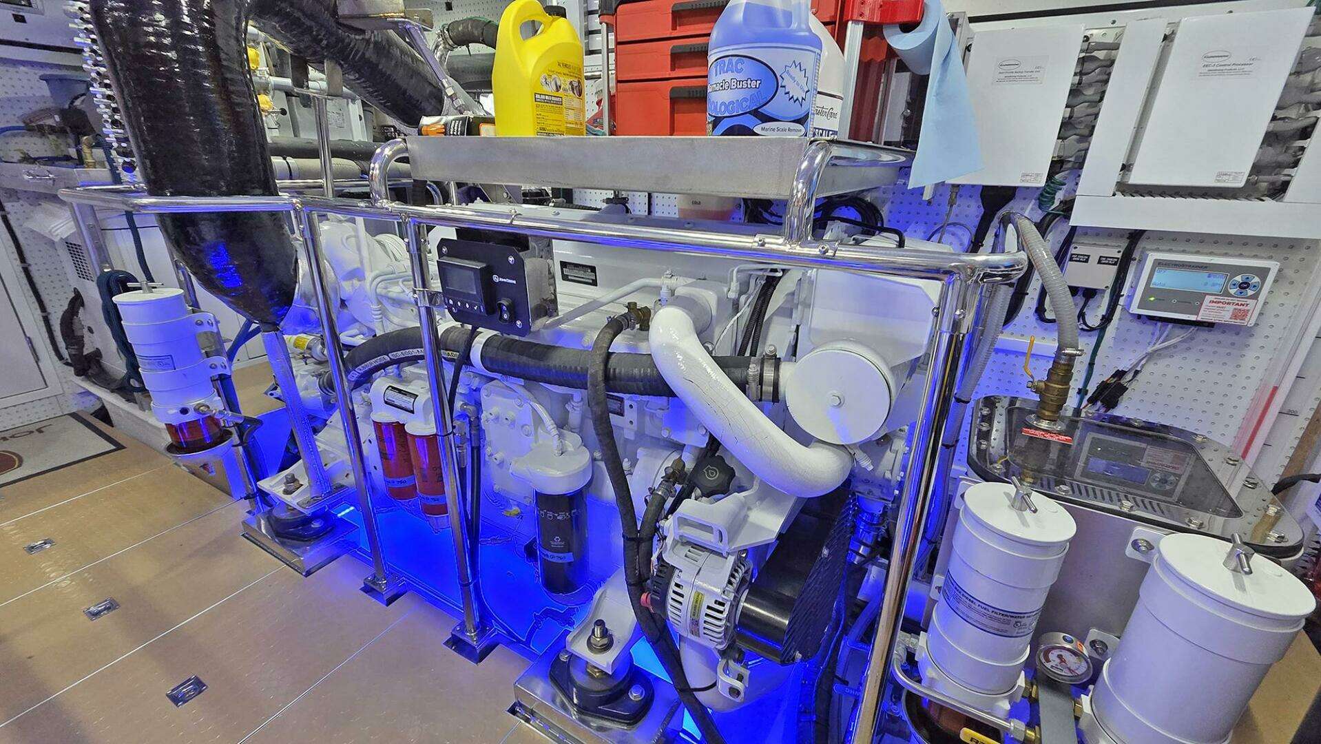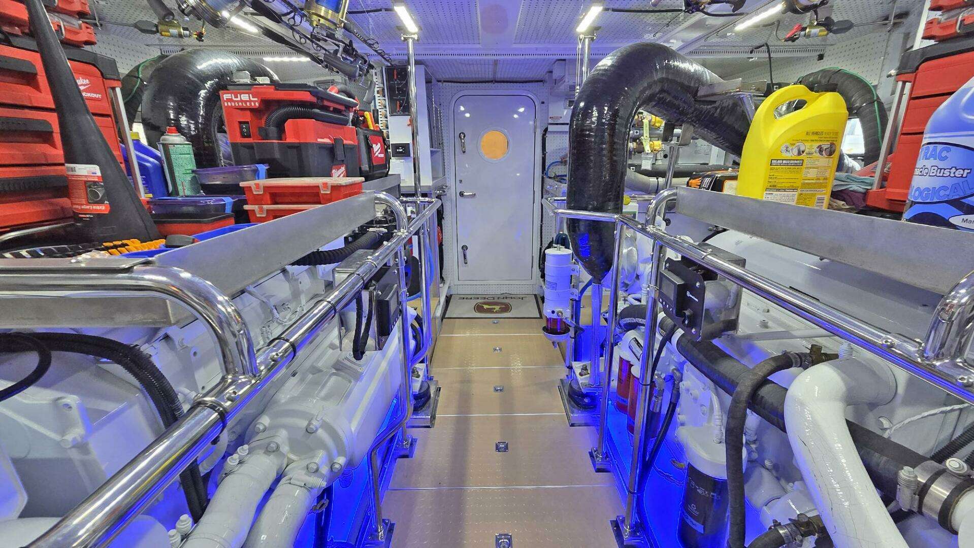 KNOT STABLE represents the pinnacle of elegance and ocean-going proficiency. Powered by fuel-efficient John Deere engines, she delivers reliable performance and long-range capability. Star Zero Speed stabilizers provide a smooth and comfortable ride both underway and at anchor, while upgraded bow and stern thrusters ensure precise handling and effortless maneuverability. The elegant interior features beautiful Brazilian teak flooring, creating a warm and timeless ambiance that complements the yacht’s modern design.