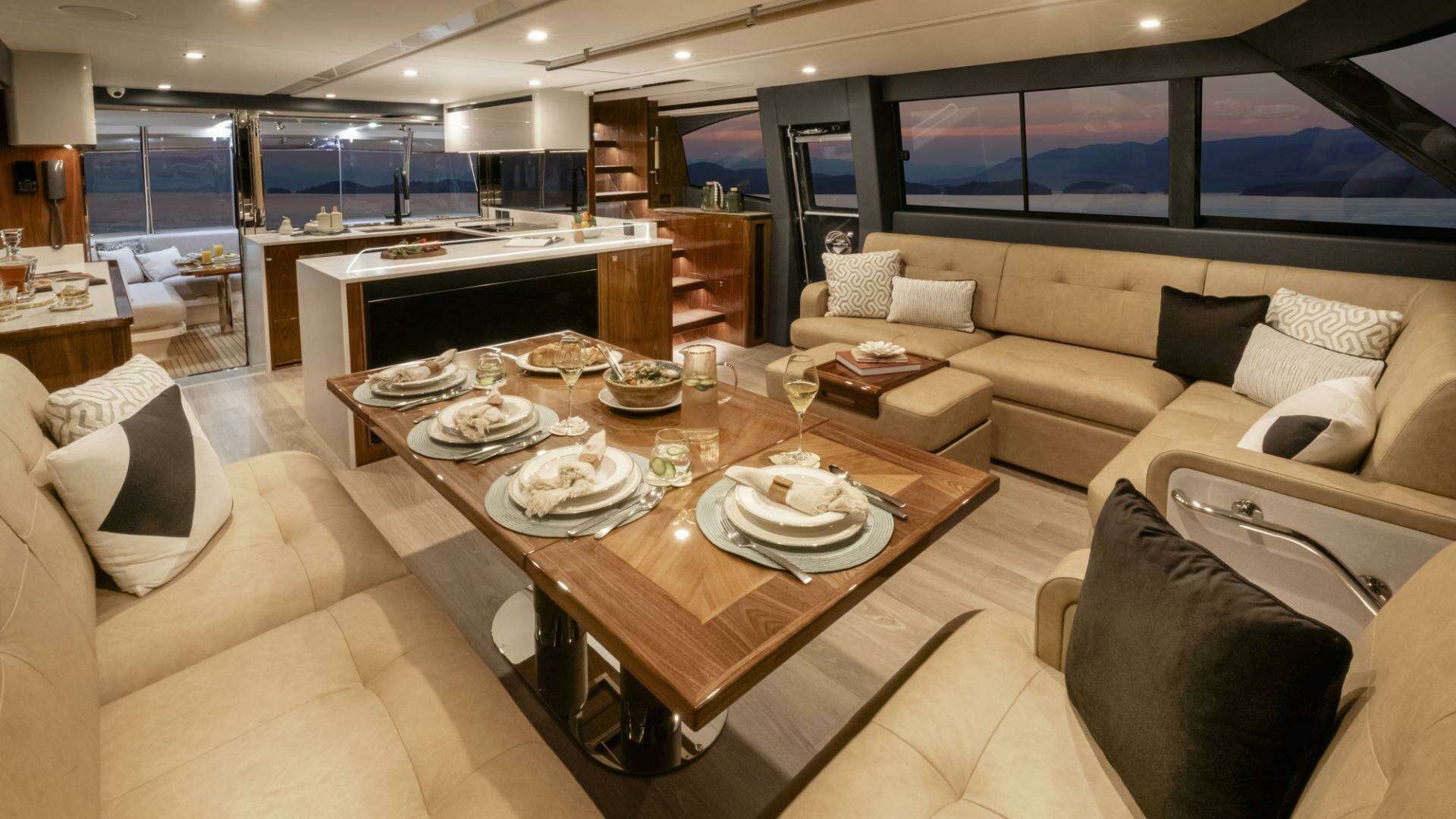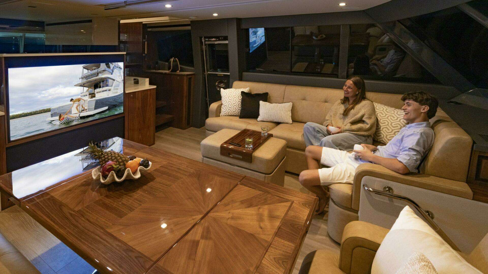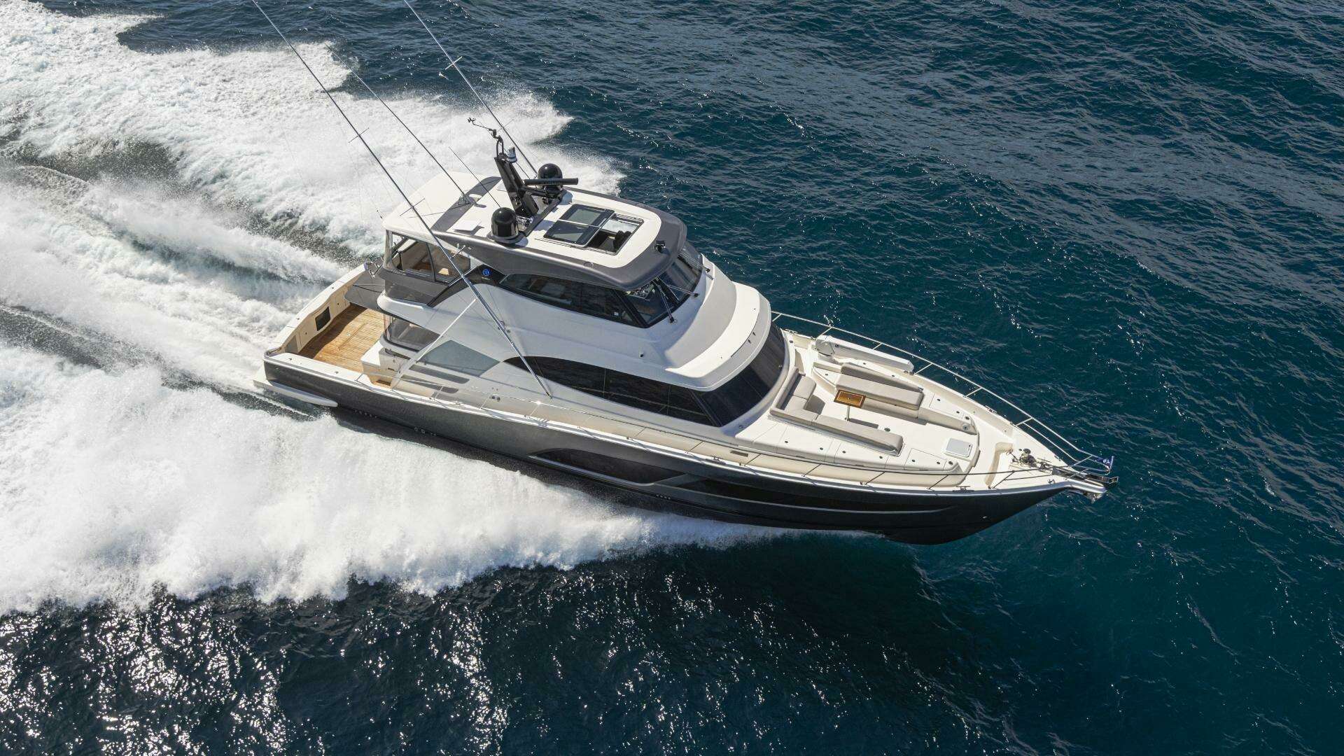 The outstanding 72 Sports Motor Yacht Series II is the new generation of Riviera’s legendary, long-range, luxury motor yacht. First launched in 2018 the 72 set the standard for a blue-water yacht that had it all; a wide, open cockpit to enable all manner of water sports, walk-around side decks, foredeck lounge and entertaining, all-weather alfresco deck, luxurious saloon with internal staircase to a fully-enclosed air-conditioned flybridge and state-of-the-art helm. The 72 offers a choice of three or four staterooms with four bathrooms, an opulent full-beam master suite and a versatile utility room or crew cabin.
