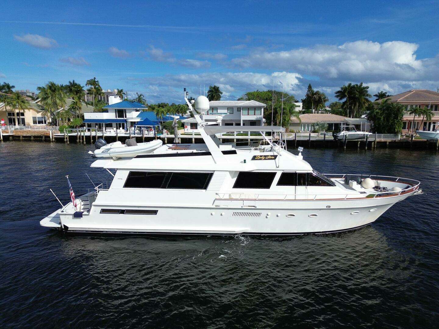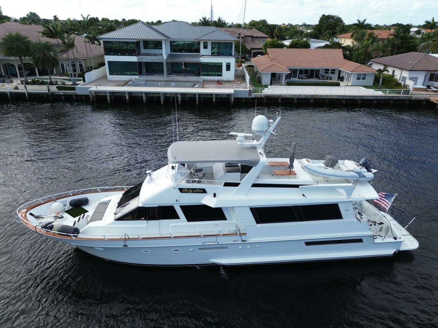 Prospective clients are highly encouraged to view a 70’ Hatteras MY or CMY before viewing “LUCKY STARS”. The standout features of LUCKY STARS will be evident! Amazing master suite, huge flybridge and the cockpit/hydraulic platform are standout features.