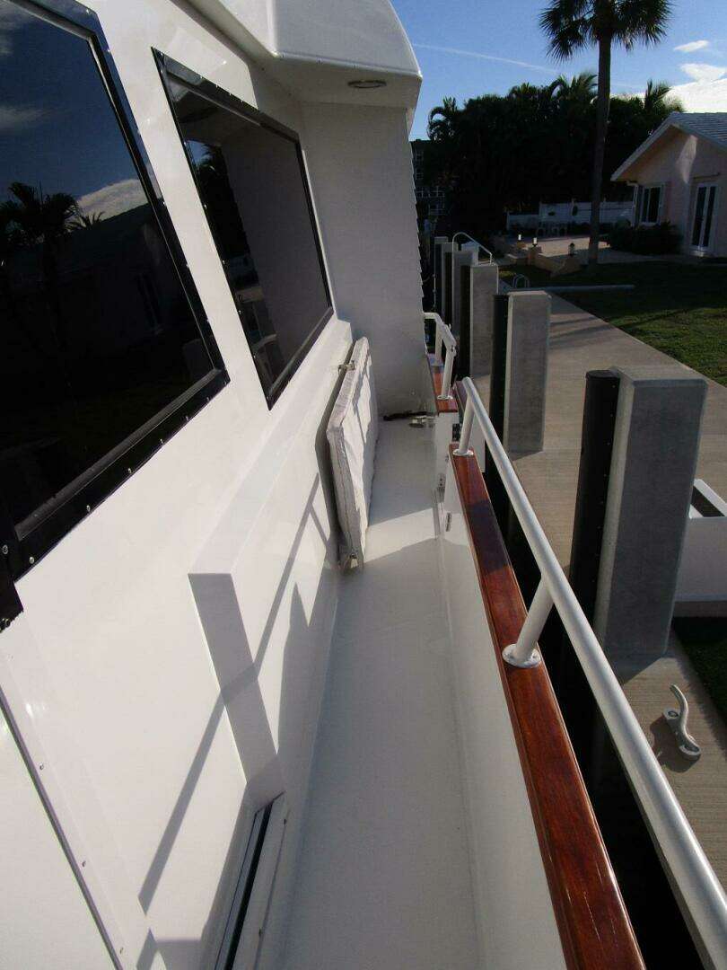 Looking more closely, one finds the Viking flagship of the era with higher end finishes, an improved layout, a spectacular flybridge and of course all the benefits a cockpit offers cruising warmer climates. Reported by Viking to be the only 70/72 with the raised FRP bulwarks. Besides the improved profile look, it makes it safer for children, pets and line handling on the bow.