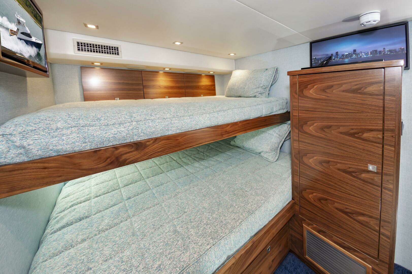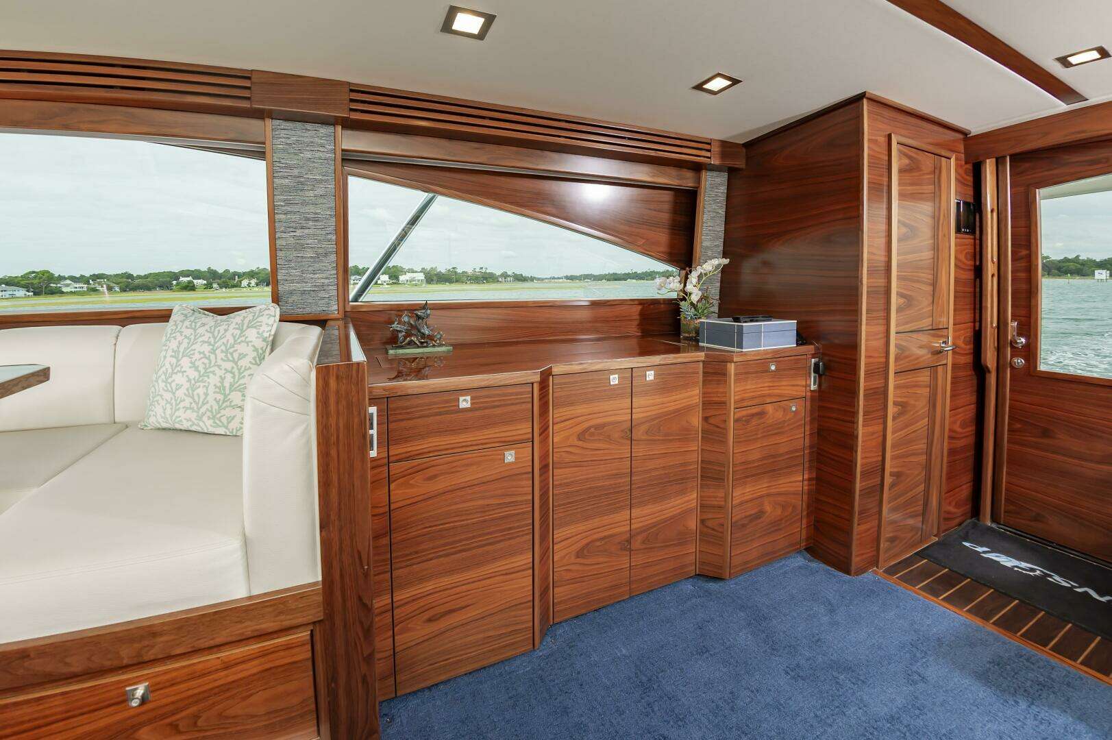 - Port and starboard cabinet at aft end of lounge seating