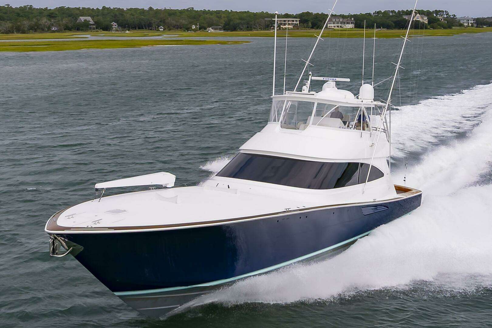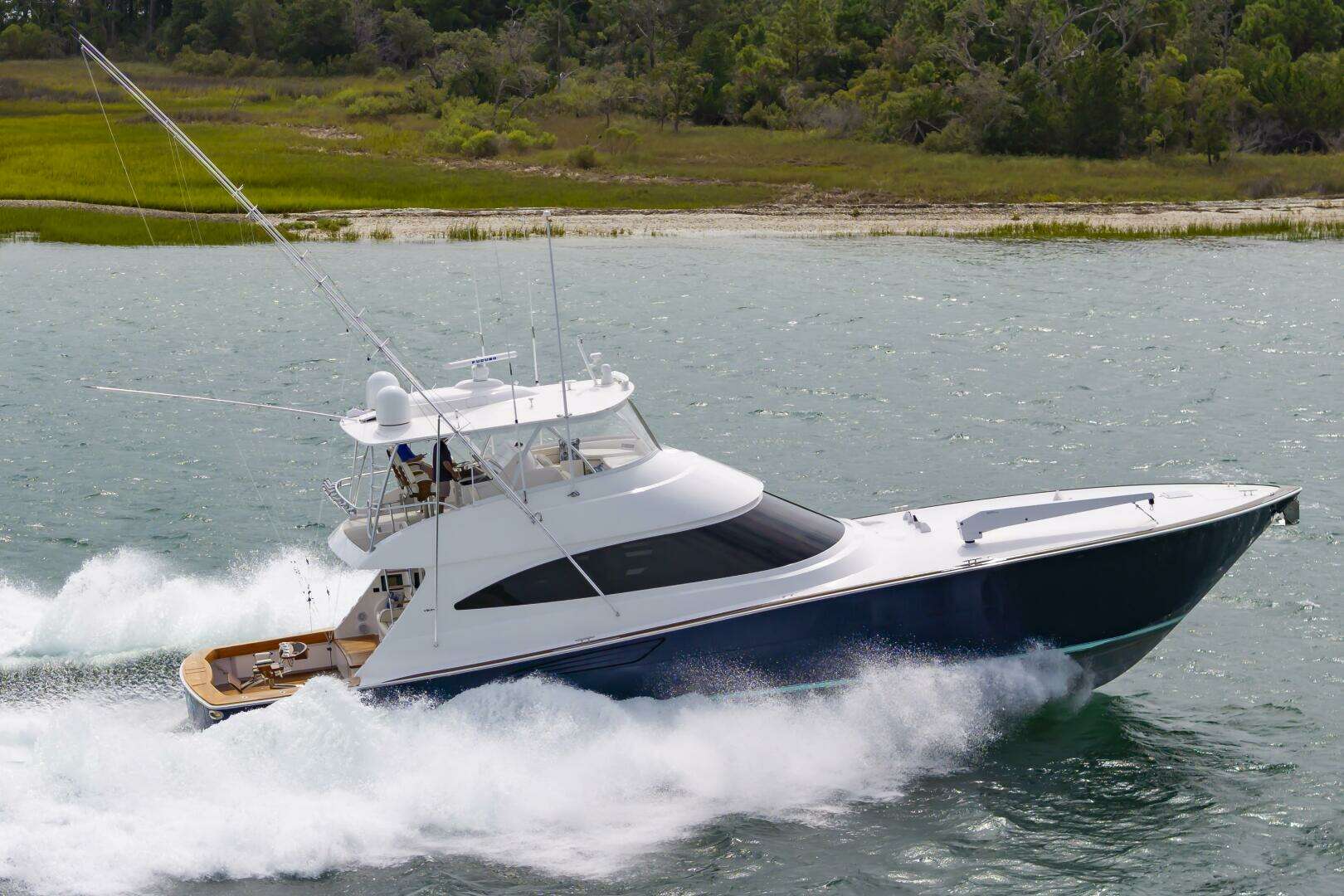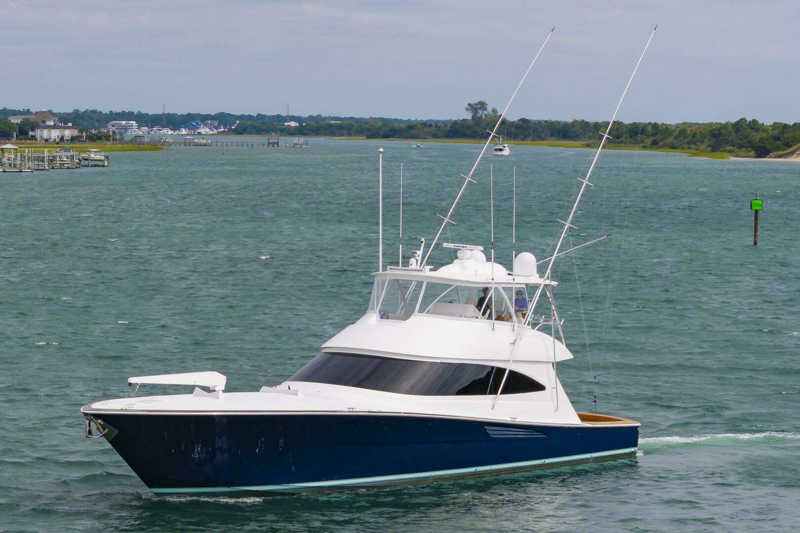 (Fin’s Up) a 2024 Viking 72 that shows like new with very low hours (543)She is powered by the popular MTU 16V200M96L engines producing 2635 mph pushing the boat to a middle 40 knot top end and an easy 35-37 knot cruise. Her interior feature the standard 4 stateroom layout with center lined queen bed in the bow. The interior wood is a Horizontal grain Satin walnut. Some of the options include Sea Keeper, Sonar, full teak cockpit, a open galley for entertaining and a 2500# Davit on the bow for those trips to the Bahamas and a dinghy is needed. In short, Fins Up is a sportfishing Convertible that combines Powerful MTU propulsion, luxurious accommodations and a fishing -focused deck design. A yacht that dominates seas in both comfort and capability. See full listing for all the options and give Clark Sneed a call to schedule a showing?
