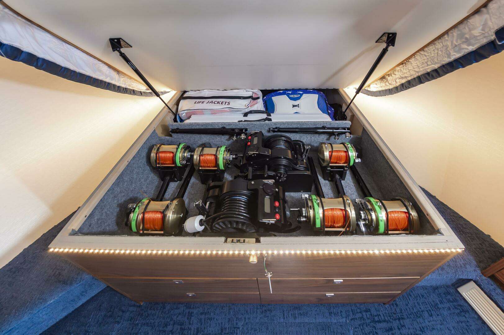 - Access to forward Pantry area behind galley for Rod storage and supply's.