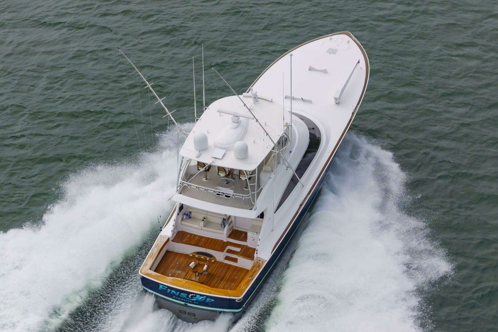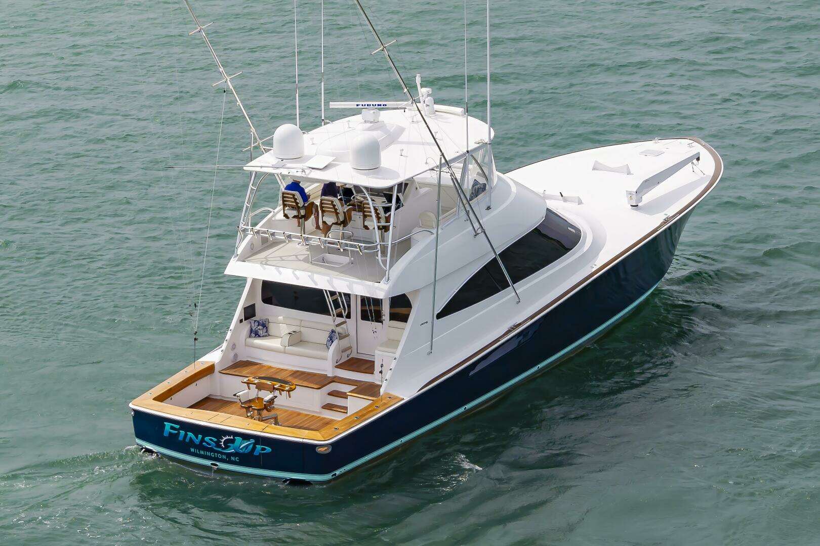 (Fin’s Up) a 2024 Viking 72 that shows like new with very low hours (543)She is powered by the popular MTU 16V200M96L engines producing 2635 mhp pushing the boat to a middle 40 knot top end and an easy 35-37 knot cruise.