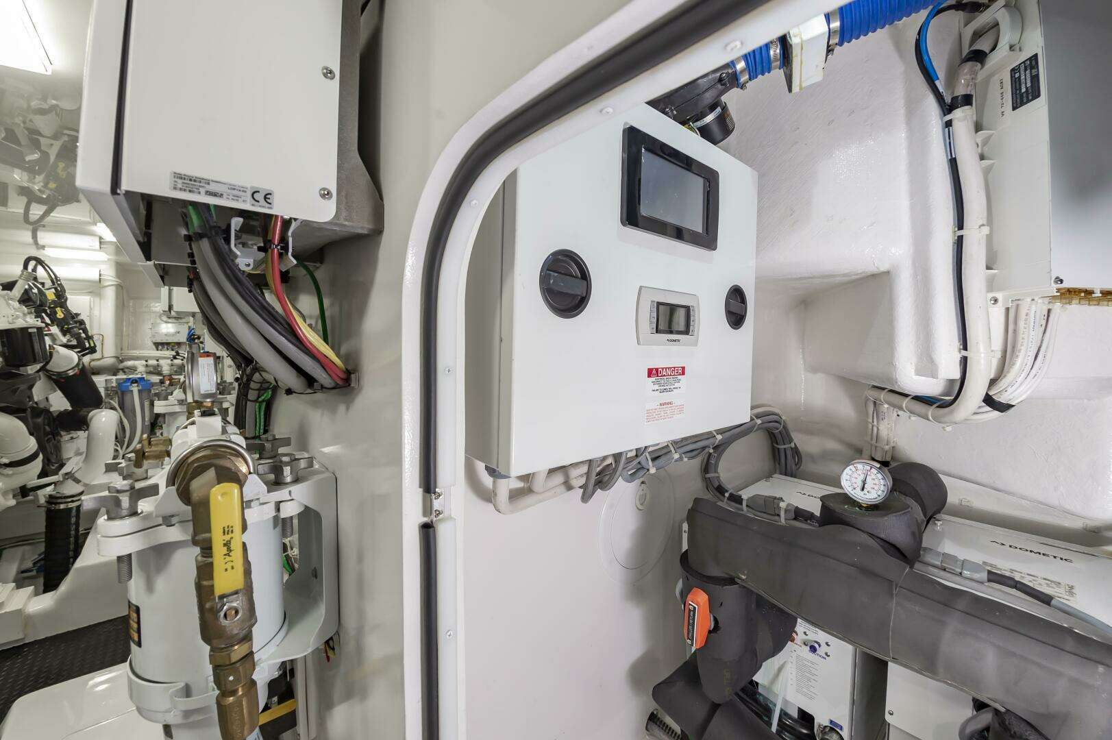 - Touch screen control monitor with audible and visible alarms: fire, engineroom temperature, high bilge water, high exhaust temperature, generator and tank level monitors, as well as confirming correct system operation