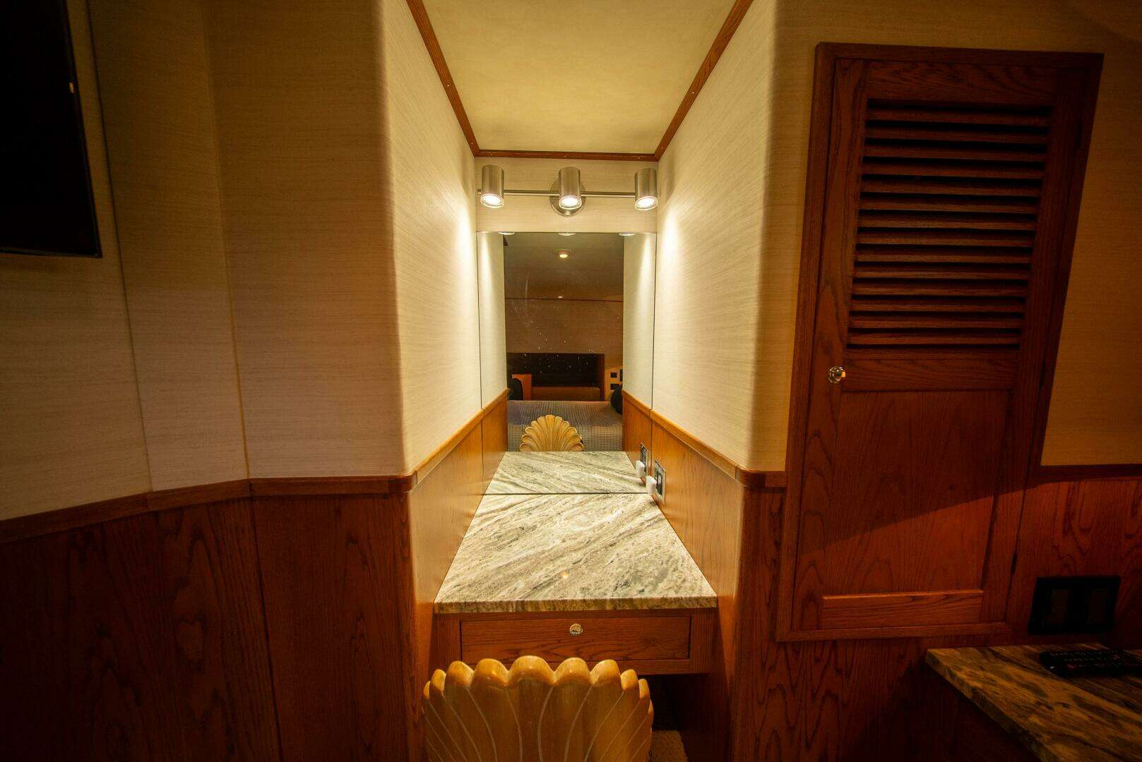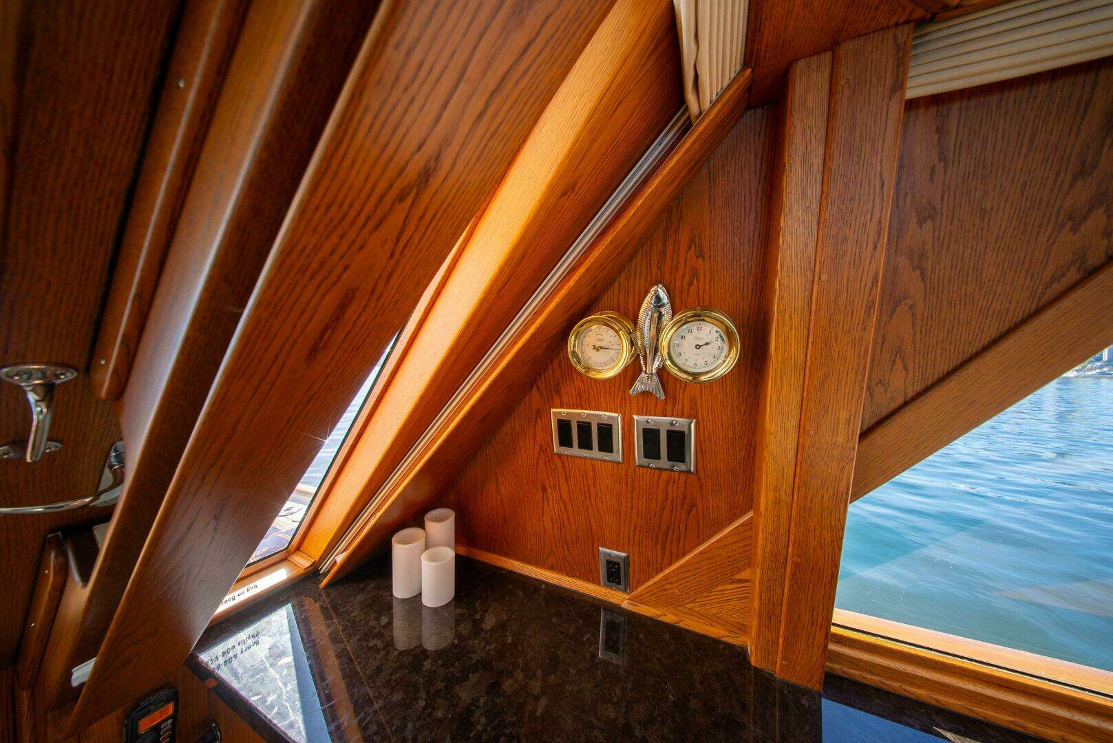 - Matching burl wood on the chart counter and pilothouse / dining table