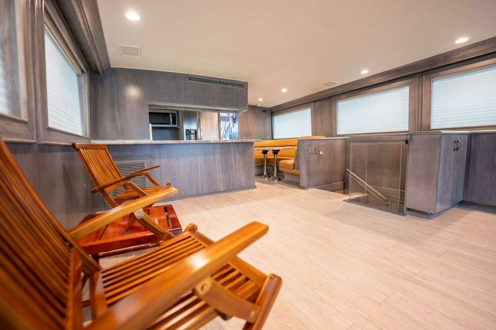 - Sun deck with bench seating