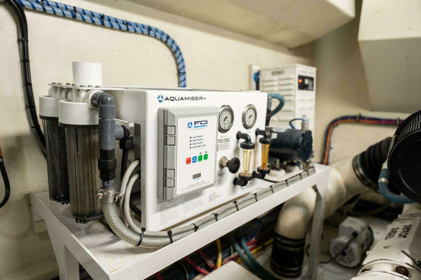 - Dockside water inlets with pressure-regulating valve